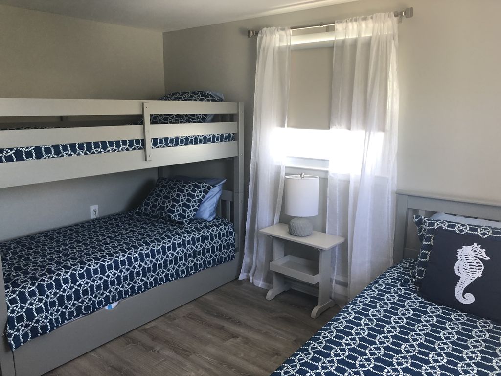 Enjoy the perfect location in Surf City in a newly renovated property, completed as a labor of love with all the touches of home! This 3 bedroom, one bath unit has been fully renovated with a new kitchen, bathroom, new appliances (refrigerator, dish washer, stove, oven, microwave) and furnishings, central A/C, washer / dryer, cable, Smart TV.