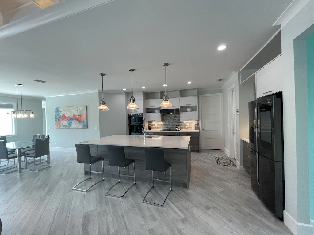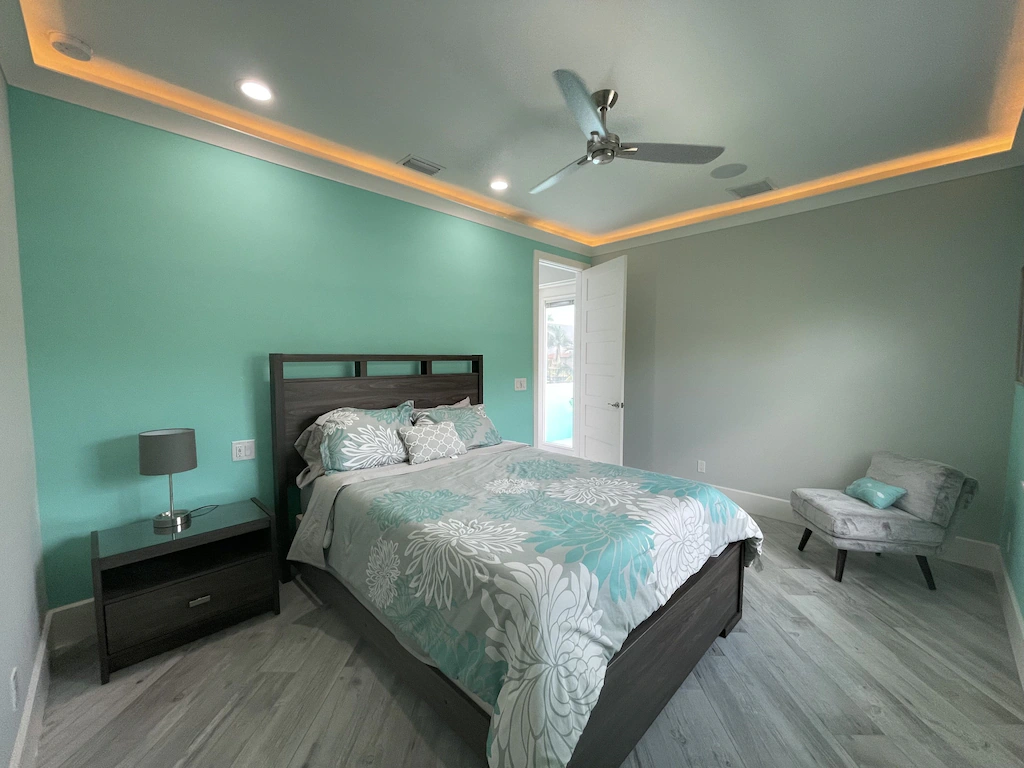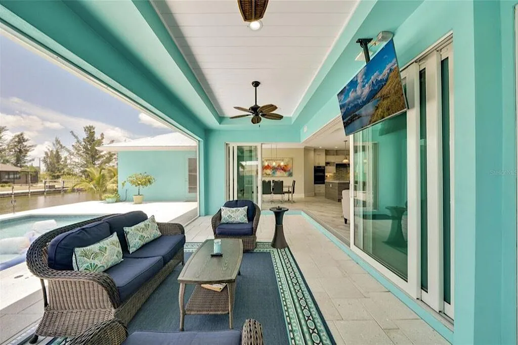 This is a 3 bedroom 3 bath home with an additional office/guest area. The home has an open floor plan with views of the pool and canal. The Waterfront property with master suite having access to the pool area and offers a walk-in closet, and a modern master bath which features a wall mounted commode, his and her sinks, as well as a his & her walk-in shower. In the open great room area there is a 90 degree pocketing slider which allows you to open up to the outdoor screened patio area.. The home is equipped with speakers throughout the main areas to include, living room, master-bedroom, and patio area, The kitchen is equipped with black stainless appliance, induction cook top, quartz counter tops and a large central island. There are three bathrooms all with walk in showers.