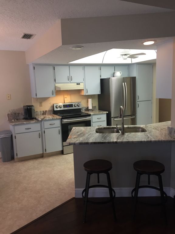 Lots of new updates inside including paint, flooring and granite countertops. Home has stainless steel appliances, reclining leather furniture, Keurig coffee maker, washer and dryer and more. Board games, 4 bicycles and beach toys included for family fun. A very nice home away from home.
