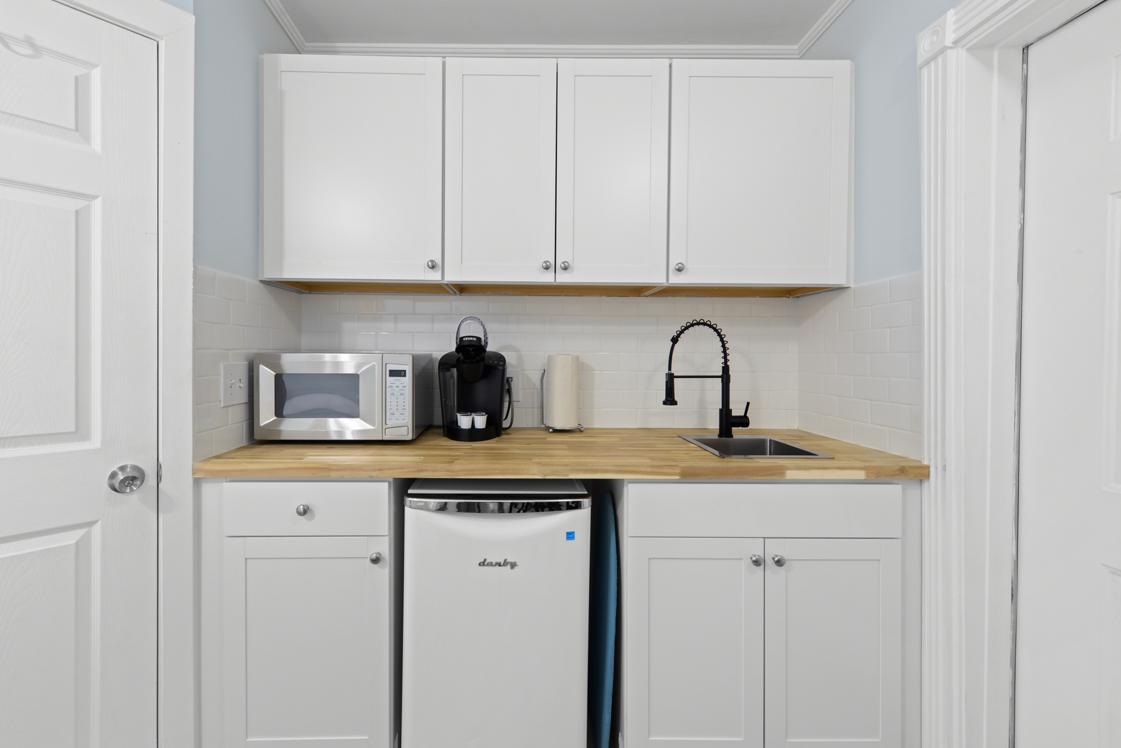 Kitchen features a mini fridge, both K-Cup and drip coffee maker, microwave oven, toaster oven, induction hot plate for some light cooking and a counter top icemaker for mixing up your tropical cocktails.