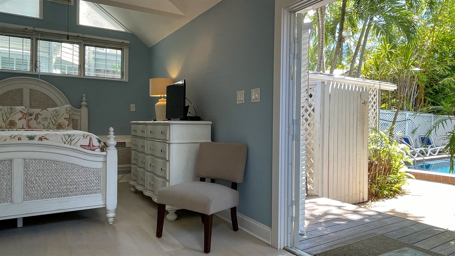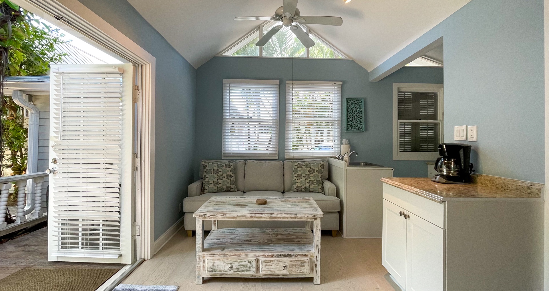 Welcome to Osprey—a beautiful studio in the heart of Old Town Key West! Perfectly located at the Colony on Olivia Street, just two blocks from famous Duval Street, this ground-floor studio suite is equipped to make your stay in the islands comfortable and convenient. Osprey is both removed from and integrated into Old Town Key West. It is tucked away in a quiet neighborhood, but close enough to walk to any bar, restaurant, shop, or gallery. This is a non-smoking unit designed to accommodate two people.