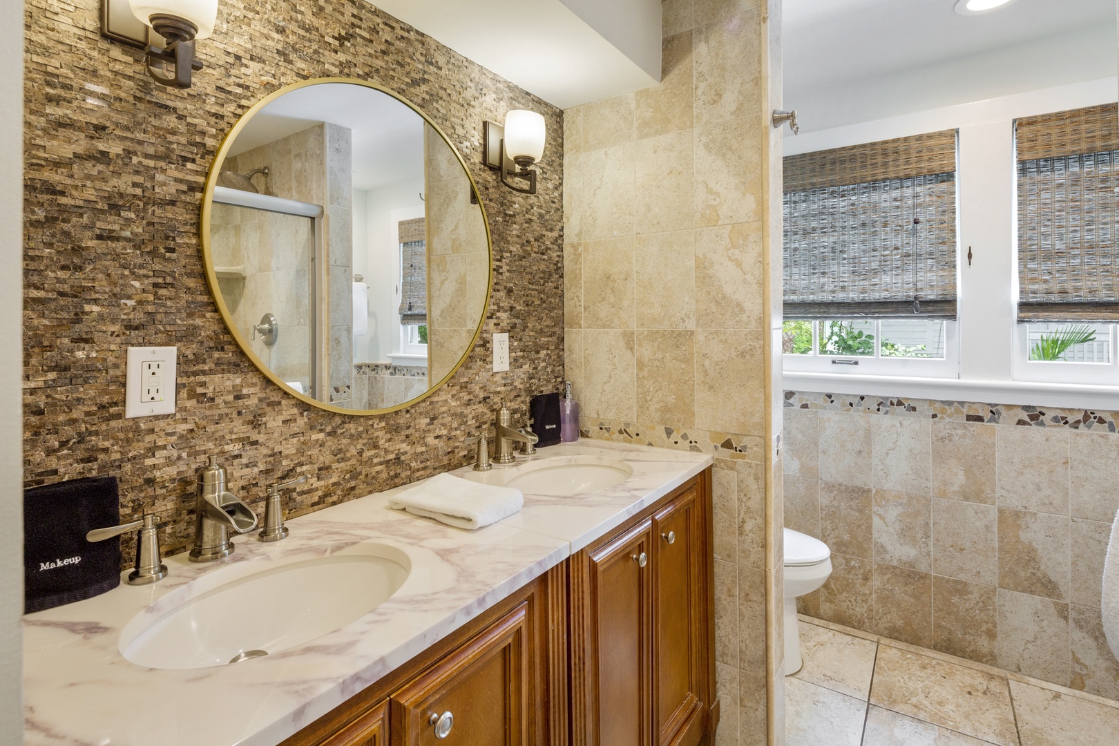 All of the bedrooms are ensuite; 3 have king beds and 1 has 2 twins which can be made into a king. The bathrooms in the king rooms have walk-in, tiled showers and the bedroom with the twins offers a bathtub with in-tub tiled shower.
