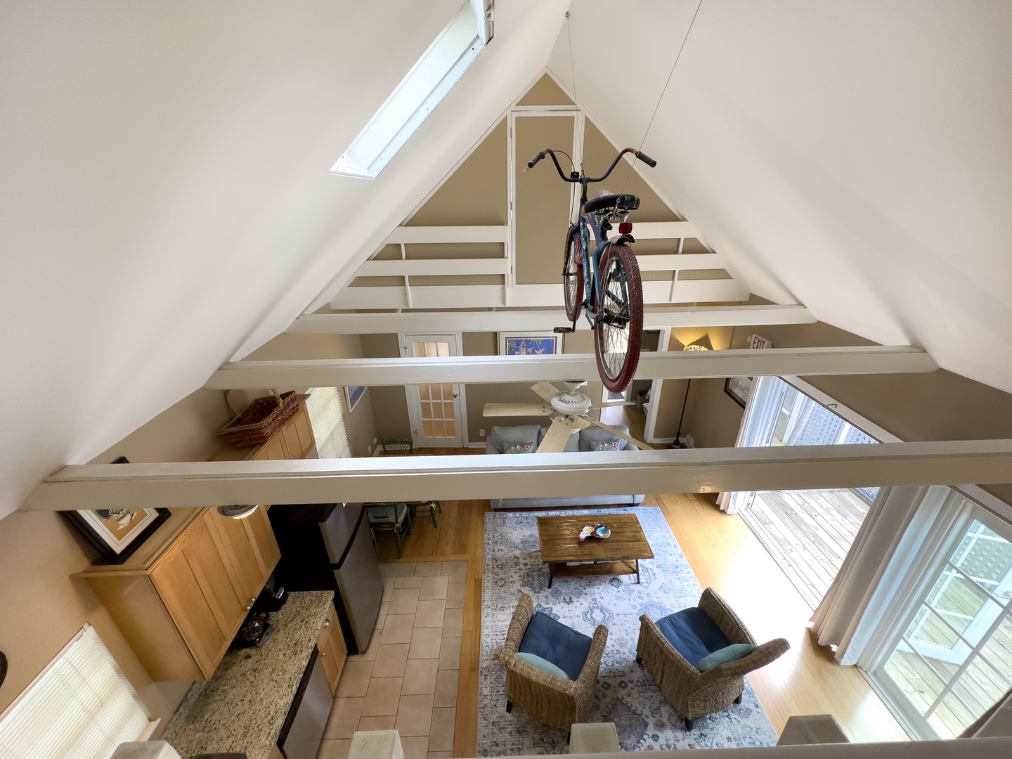 Gaze up! You can’t miss the custom-painted, retro beach cruiser bicycle mounted mid-air in the whitewashed rafters above the living space. This original art piece, painted by renowned local artist Tony Gregory, complements the colorful, vibrant island aesthetic. Conch cruiser bicycles are iconic in Key West! This one-of-a-kind bike was hand-painted as part of a charity fundraising auction for the Studios of Key West. Let this charming cruiser inspire a tranquil bike ride through this tropical neighborhood!