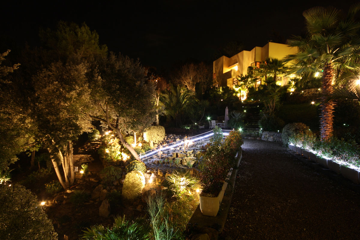 The whole area has been laid out according to professional planning - the entire land has been illuminated with ”fibre optic lighting installations” all over the garden, lighting up the buildings, the drive-way to the villa, and the swimming-pool area, and throughout the entire area!