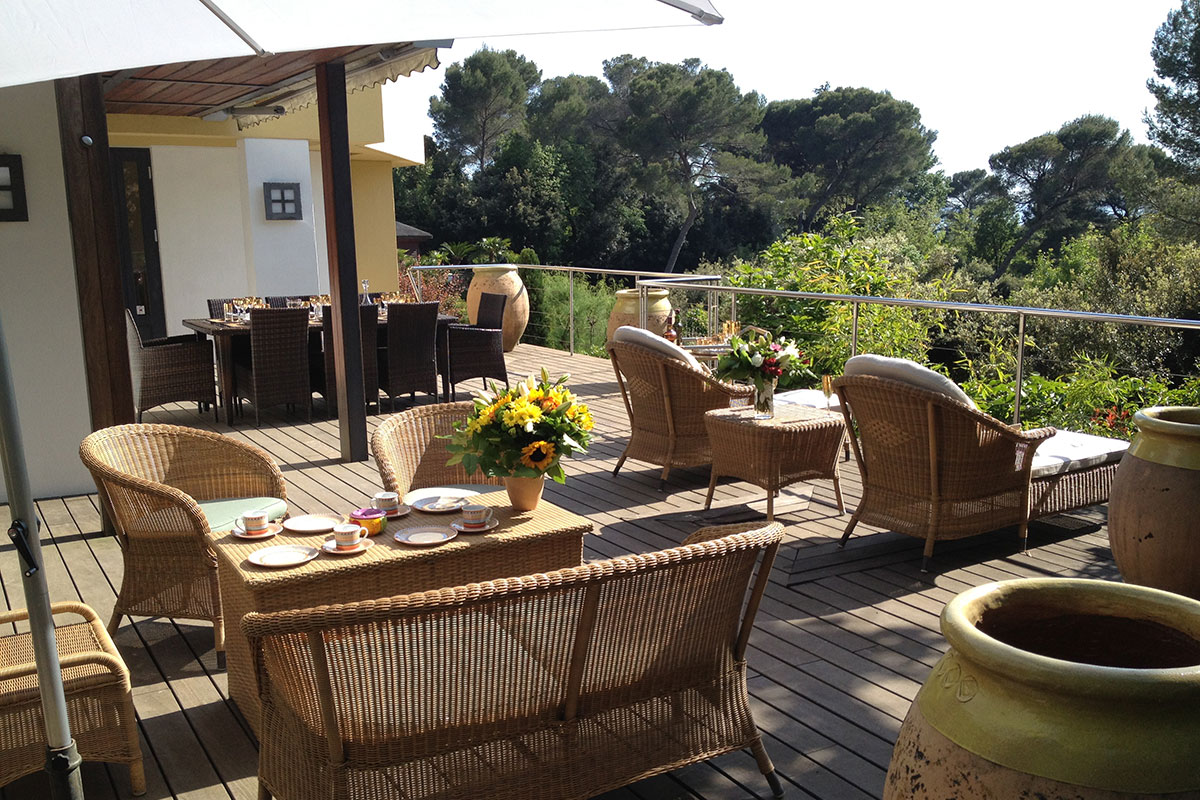 Between Cannes and neighboring picturesque village of Mougins, close to golf, tennis and high-class restaurants, for short or long term rent or sale.
