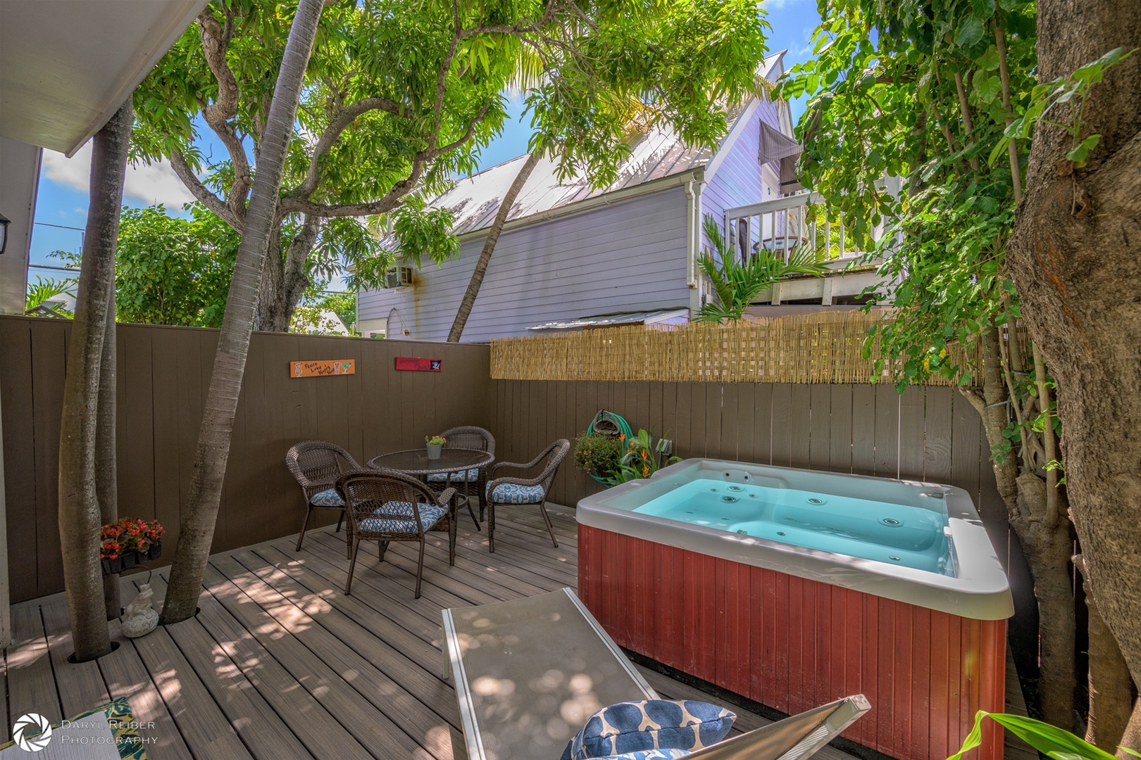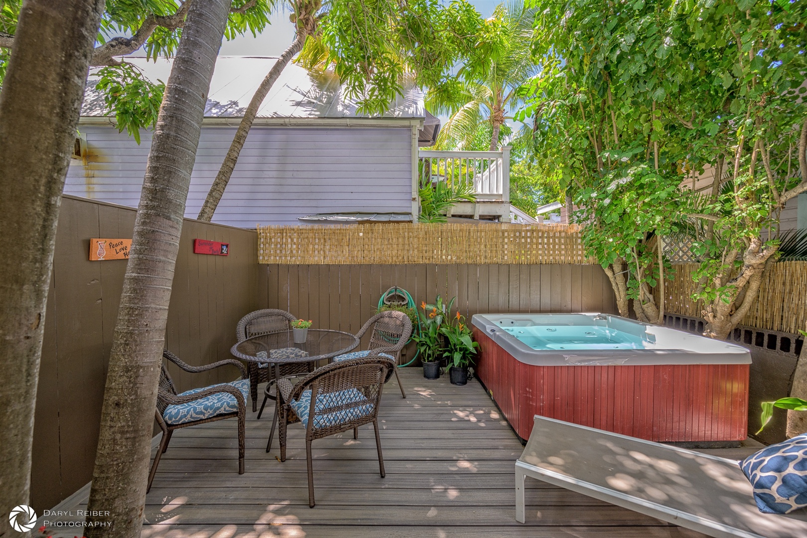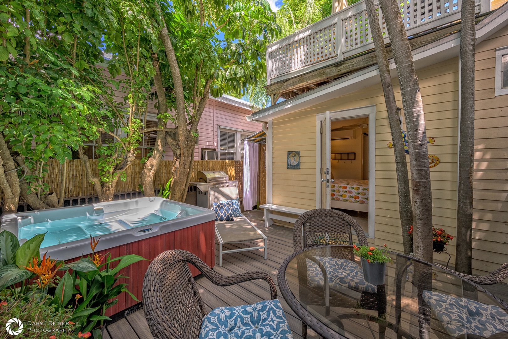This well appointed unit has been thoroughly renovated while preserving its turn-of -the century historic charm. Furnished with bamboo furniture, bright accents, and Cuban-inspired artwork, the open floor plan offers total comfort and convenience. Each bedroom features a queen bed, TV, and ensuite bathroom which makes it ideal for families and couples traveling together. Although the the second bedroom ensuite bathroom is only a half bathroom, an outdoor shower awaits on the large private deck just outside the bedroom door. The six-person Jacuzzi, sitting area, gas grill, and spacious living area makes this the ideal property for entertaining family and friends.