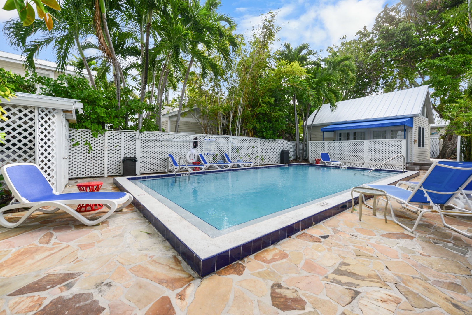 Hidden from sight, among a colony of freestanding conch cottages and surrounded by lush tropical landscaping, you will find Hidden Treasure. Truly a treasure, it is the sister cottage of Island Style, owned by two sisters who share a passion for Key West. It features every high-end amenity that you could possibly desire. Two king bedrooms, two full bathrooms, a high-end stainless steel full kitchen, a huge flat-screen TV with surround sound, washer/dryer, Wi-Fi, gas grill, and a shared oasis-style heated pool.