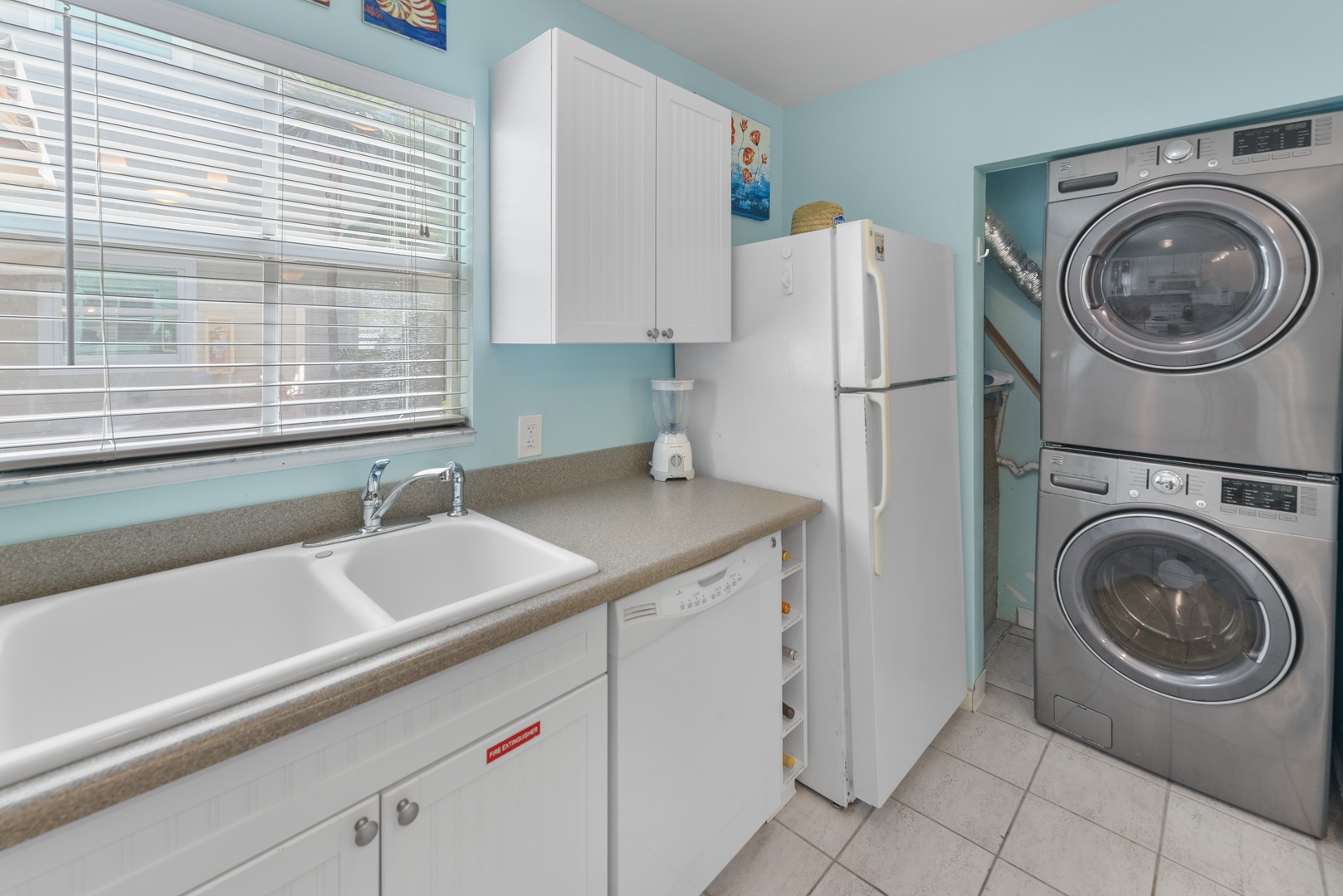 When you enter the home you will find a fully equipped kitchen, dining area, spacious living room and a convenient half bath. French doors let in the natural sunshine and open to the private back deck with dining table and chairs perfect for outdoor entertaining.