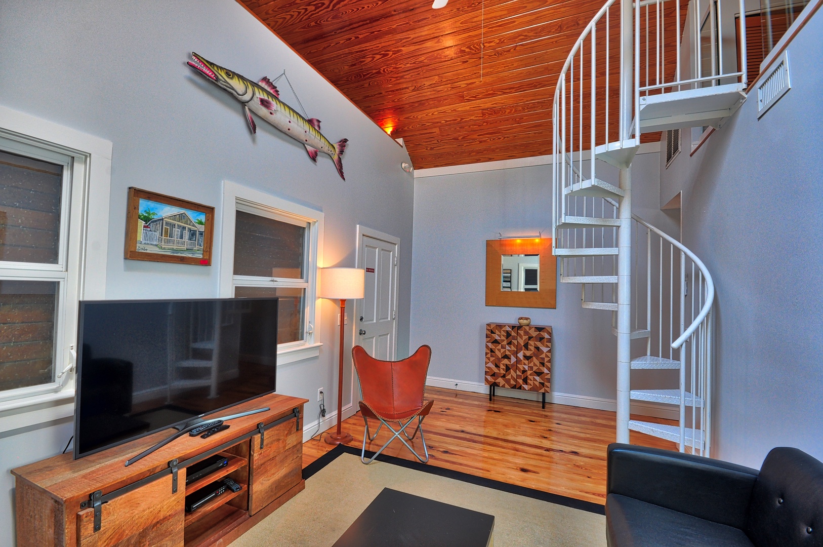 This property has it all! The styling of the original shot gun homes of Key West restored with a beautiful natural cypress exterior combines with the clean lines of a contemporary home. Each cottage opens to it\'s own semi-private deck and lounge area with steps into a large kidney shaped pool with waterfall. Inside the comfortable living room there is a spiral staircase to the loft second bedroom with unique glass railing. Large windows in the kitchen bi-fold away to allow serving directly to the pool deck and capture the warm, tropical, Key West breezes.