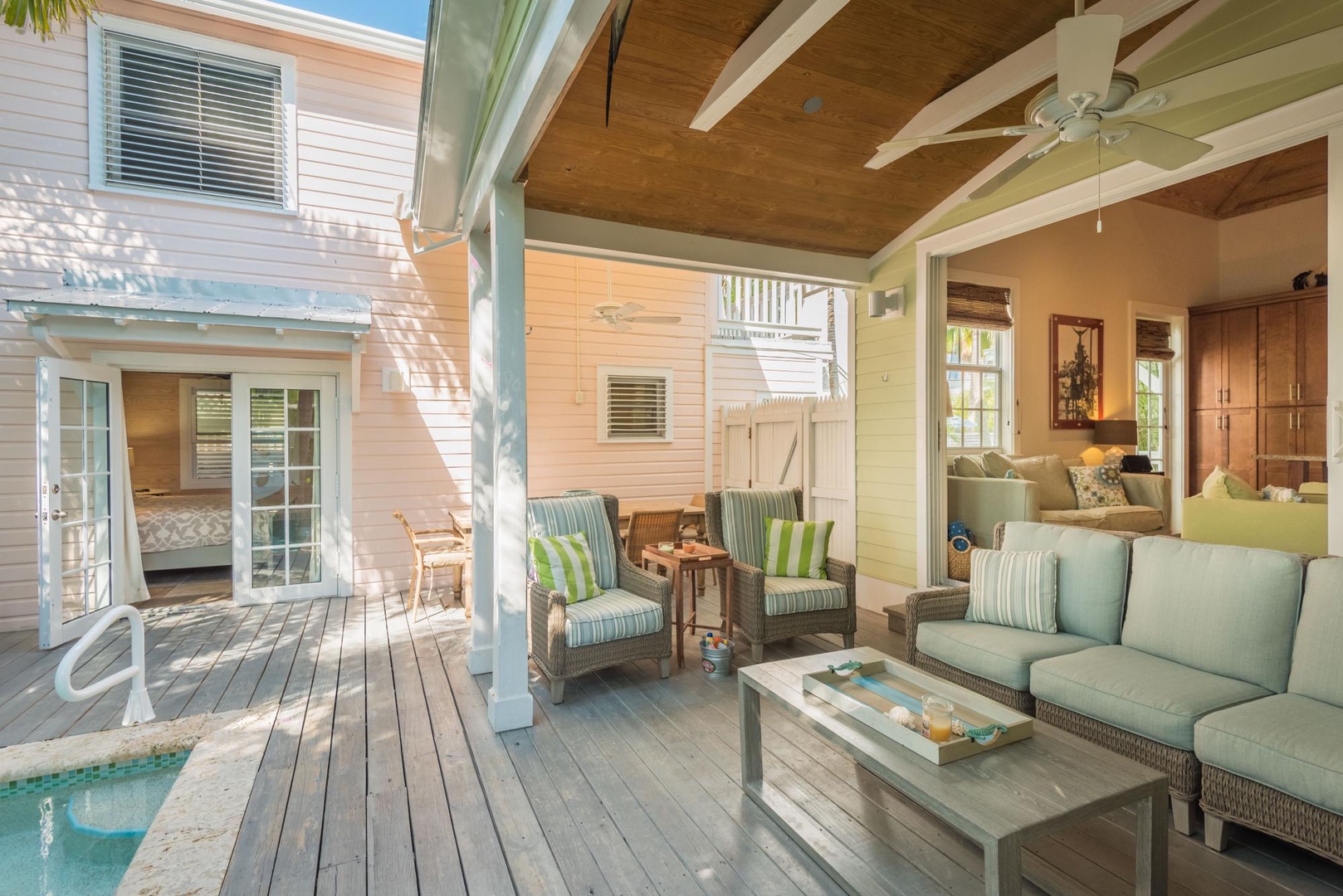 We had a fantastic family vacation at Casa Caribe in Key West. The management team was accommodating and allowed us early entry, so we could unpack our car and set up before the rest of our family arrived by air the next morning. Casa Caribe matched the description perfectly, with four bedrooms, four bathrooms, a lovely pool, and a great outdoor covered patio area with a fan for inclement weather. The off-street parking was a definite bonus. Check-in and check-out were seamless, and the property was immaculate and well-stocked with everything we needed.