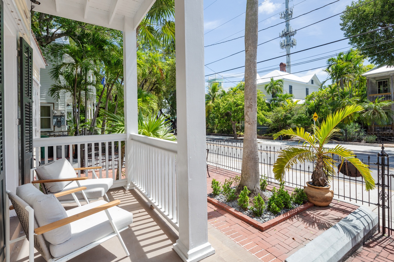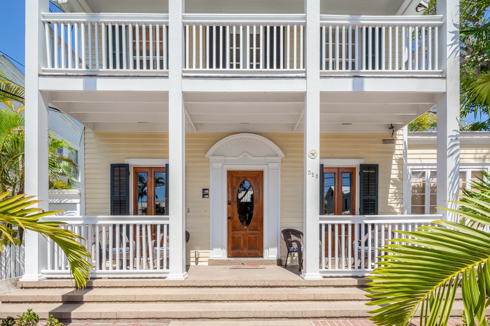 A bonus privacy and safety feature of this house is an exterior back staircase to the second and third floors. The exterior also offers outdoor living at its tropical finest.