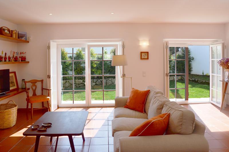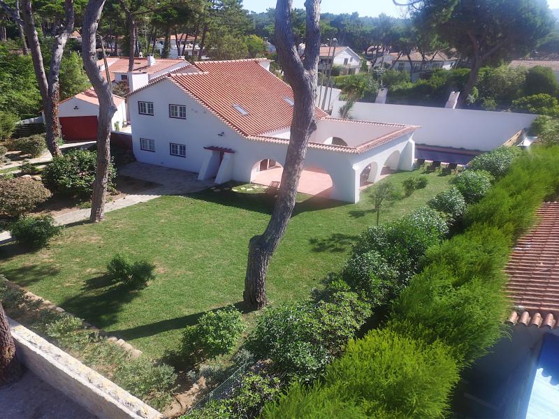 The villa is situated 13 km from Sintra and 12 km from the cosmopolitan Cascais, with its marina, entertainment, shopping, beaches, restaurants, coffee shops, delightful esplanades by the sea, not to mention the buzz of a very active nightlife. Estoril, that has the biggest casino in Europe, is only 14 km away. Lisbon, the capital, with its monuments, restaurants and its typical music, Fado, is only 35 min. away and Guincho, with its surrounding natural park, is highly recommended for beach and sport holidays. Along this coast the choice of beaches is endless. Guincho is famous for water sport activities, and white sandy family beaches, are only a 15/ 20 minutes drive away. The bus stop is just 150 m away from the villa (connecting Sintra to Cascais) and the railway station is 12 km away.