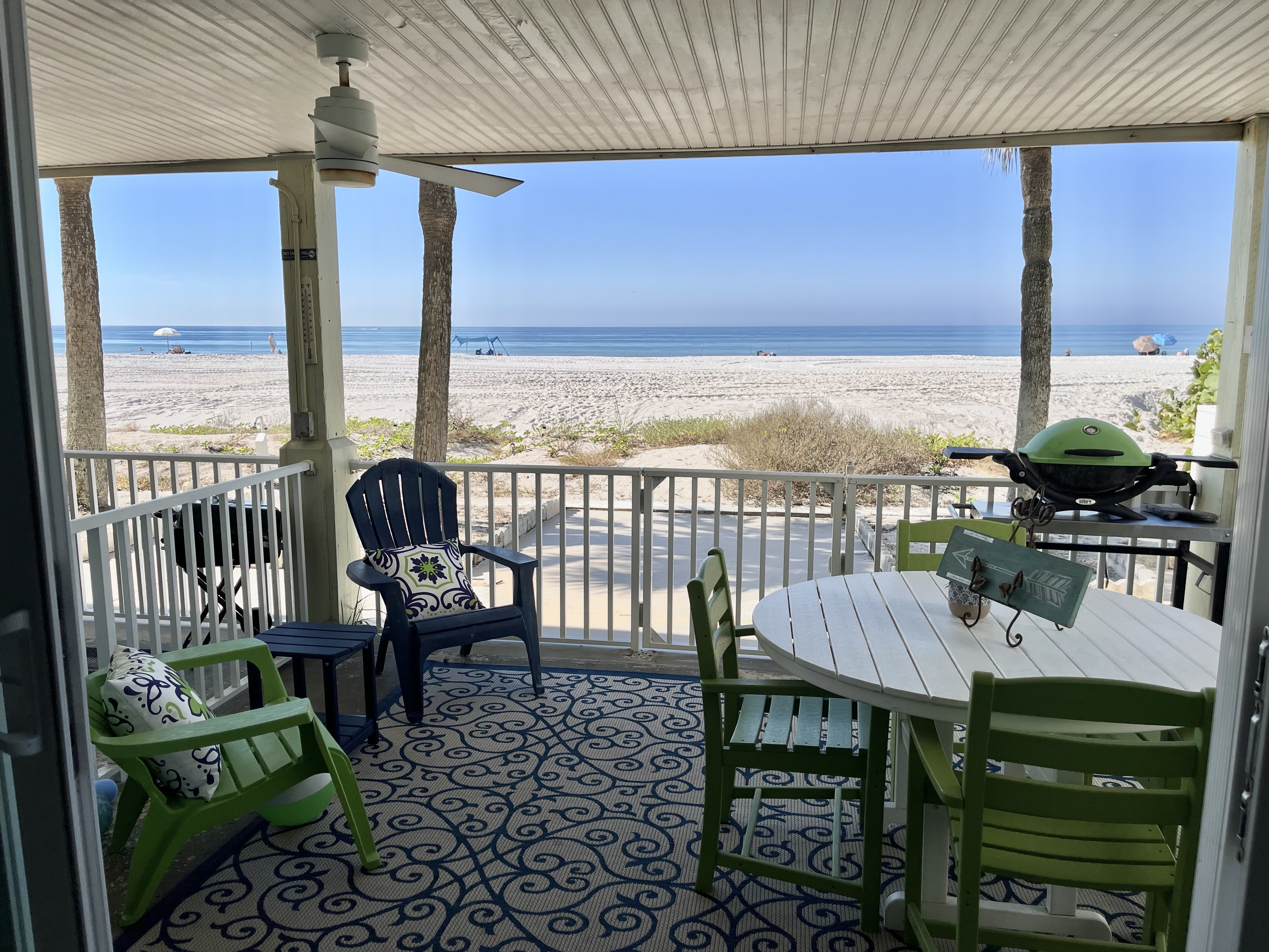 Shack on the sand is amazing We have been coming to Ann\'s condo for almost two decades. There is no place we would rather be for a relaxing stress free vacation. The condo is perfect! We say that if Ann does not have it in the condo then we probably do not need it! This is truly a gulf front condo. Location...Location...Location! this condo has the best location! the trolley stops in back of the condo, you are walking distance to a pharmacy, grocer, museum, post office, coffee shop, and some of the best restaurants around. ( our morning walks down the beach to the Lighthouse donut shop has become a sure and get the apple fritter) There is nothing better than walking out the sliders and sinking our toes in the warm sand. Beaches are beautiful, and sunsets are amazing. Ann even has torches and a table you can set up on the beach for a romantic dinner! This condo has become our \"Heaven on Earth!\". If you want to adventure beyond the area you can take the trolly up to Clearwater beach to the pier or down to Johns Pass. The trolley even goes down to St. Pete\'s beach! I could not imagine a year without visiting \"the shack on the sand\"! ( this shack is no shack!!)