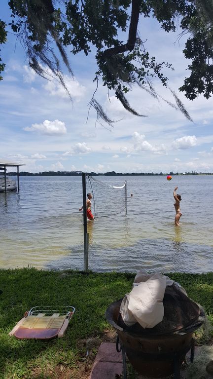 This is our personal vacation home. It is not the Hilton and has it\'s blemishes from our normal wear and tear of our family of five! The concrete house shares a communal dock with neighbors who are very nice and most of them do not reside year round in our neighborhood. We do not mind sharing it with others so that they too can relax and have a little fun on the water. The water front lake house sits on about a 1/4 acre of land on the 540 acre beautiful, small, clean, sand bottom Lake Francis in Lake Placid, Florida. The backyard has huge oaks and pine trees for shade, a swing, a table with chairs, a brand new communal dock and seawall (2018). If you bring your boat or jetski the public ramp is approximately a 5 minute drive away. There is 1 full bath and 1 half bath. The master bedroom has a full size bed. The second bedroom has a bunk bed. The bottom bunk is a full size bed and the top bunk is a twin bed. The living room has a cathedral ceiling with a flat screen TV. There is a Florida room (sun room) that you can relax in and see the beautiful lake while being air conditioned. There is a fully equipped kitchen (pots, pans, utensils, crock pot, rubbermaid containers, plates, cups, bowls). The corner window and corner sink allow you to cook and still see the beautiful lake. There is a laundry room with a full size washing machine and dryer. There is enough parking in the front yard for a truck and trailer, and approximately 2 other vehicles. The lake is great for swimming and any water sports. Please, no pets and no smoking.