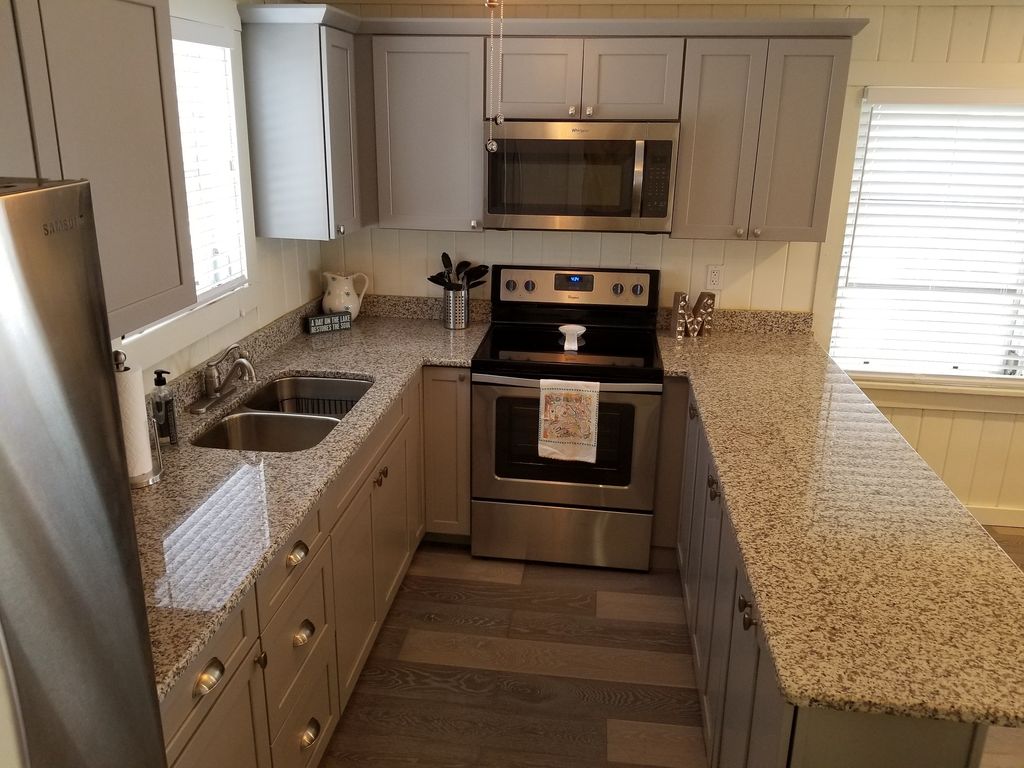 Solid white oak floor throughout welcome you! A complete renovation including new kitchen with granite counters and stainless steel appliances. New bathroom vanity upstairs and down, new blinds and a fresh coat of paint make this vacation property feel brand new. Also expanded ground floor living/bed room with interior access via the spiral staircase in the living room