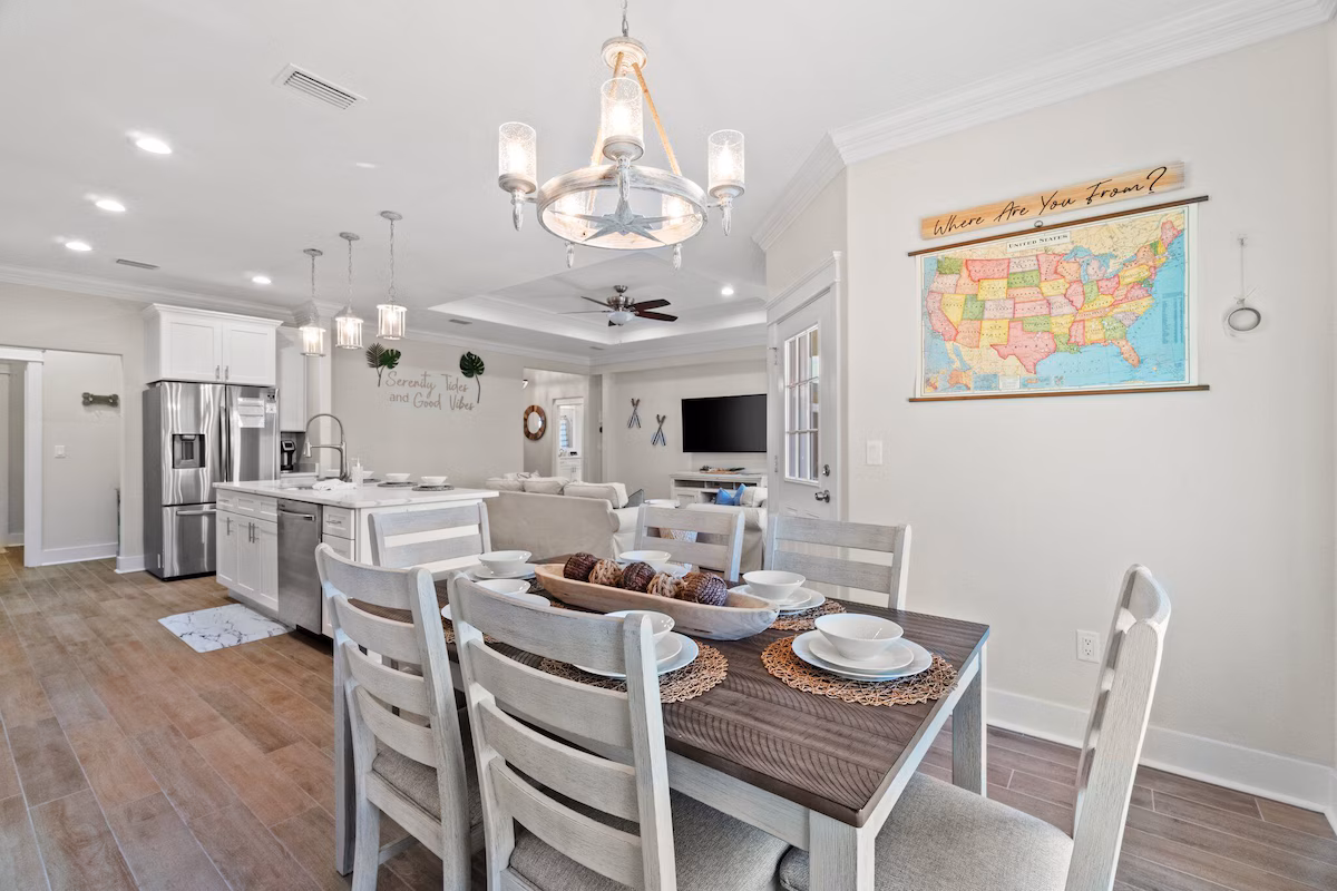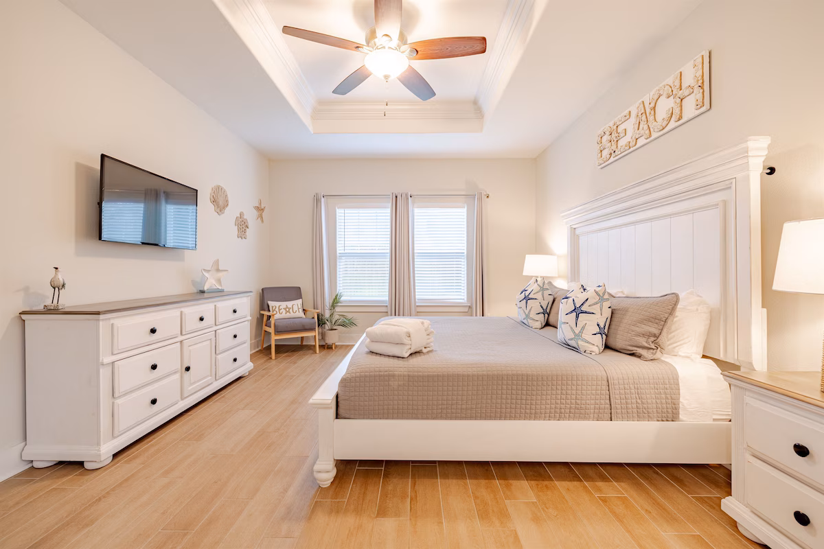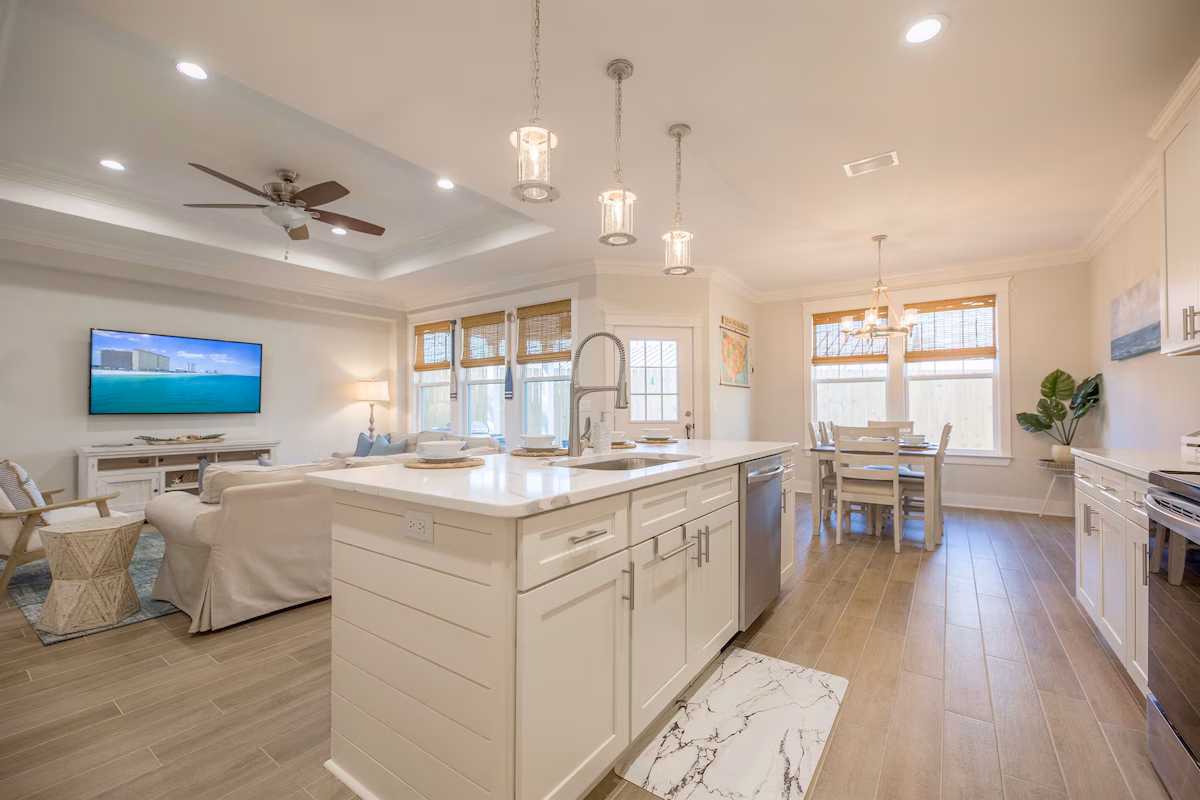 Your unforgettable beach getaway starts here—just 3 blocks from the emerald waters and sugar-white sand of Panama City Beach. Nestled in a golf cart-friendly neighborhood, our home comes with a 6-seater golf cart, so getting to the beach, dining, and attractions is effortless.