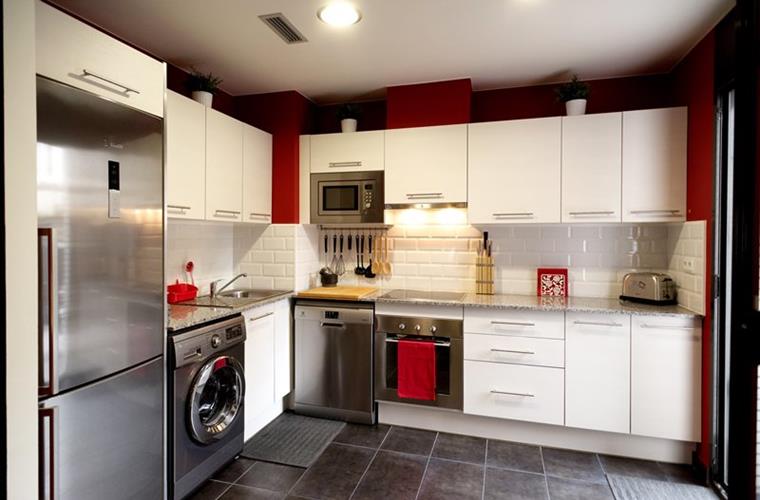 The kitchen has a fridge with freezer compartments, washing machine, dishwasher, electric stove, microwave, oven, coffee and much more