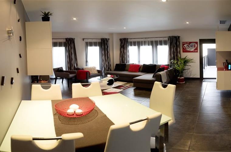 The living room has free WI-FI, TV, CD-DVD, Bluetooth speaker, satellite tv (tv-vlaanderen) and atmosphere lights the sofa bed can also be altered to a double bed.