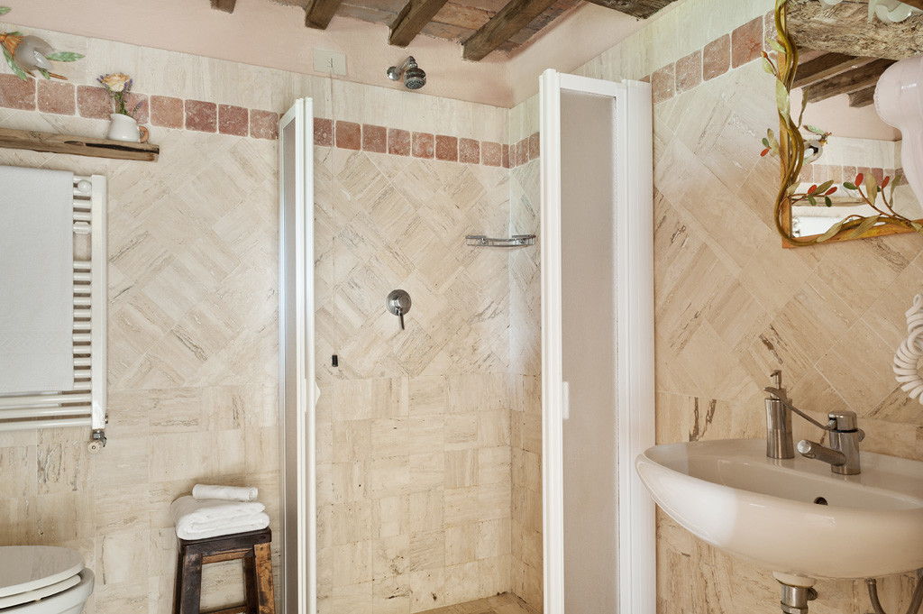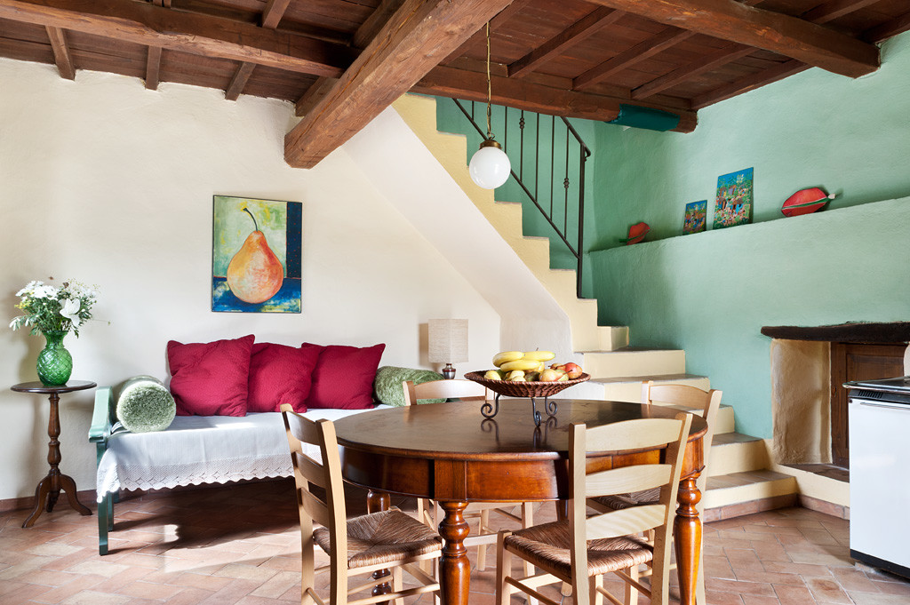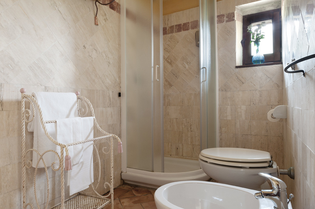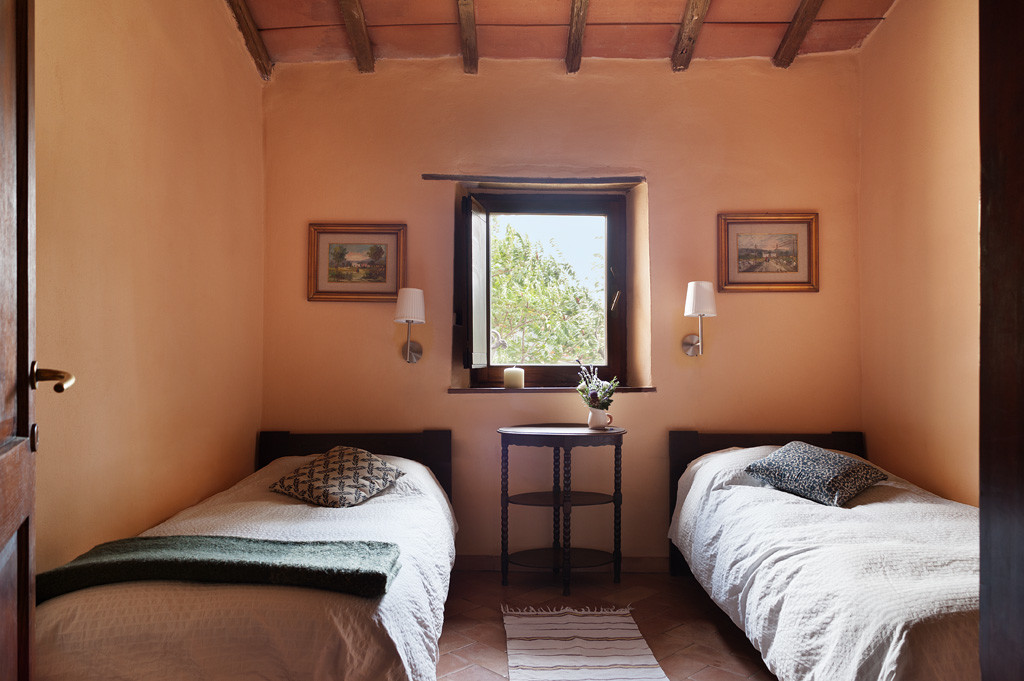 Campostefani is the main guest villa with seven spacious bedrooms. The rooms have traditional terracotta floors, deliciously cool underfoot in summer, and almost all have en-suite bathrooms and direct access to the gardens. The master bedroom has a private terrace.