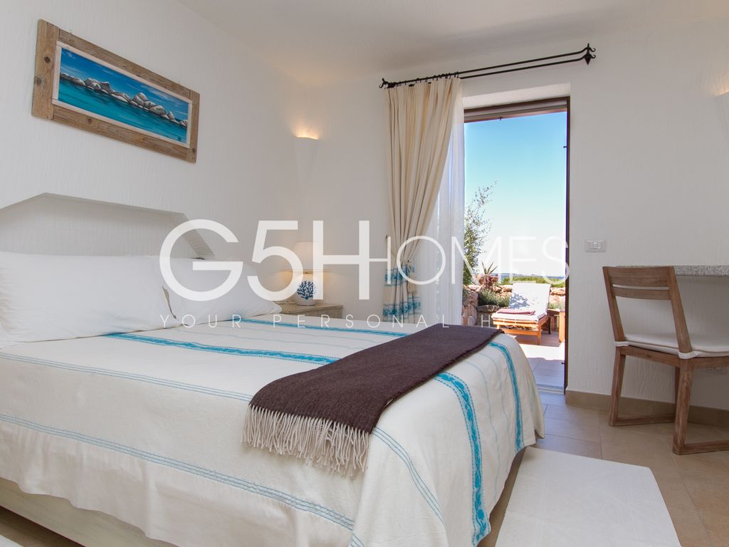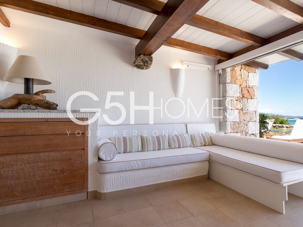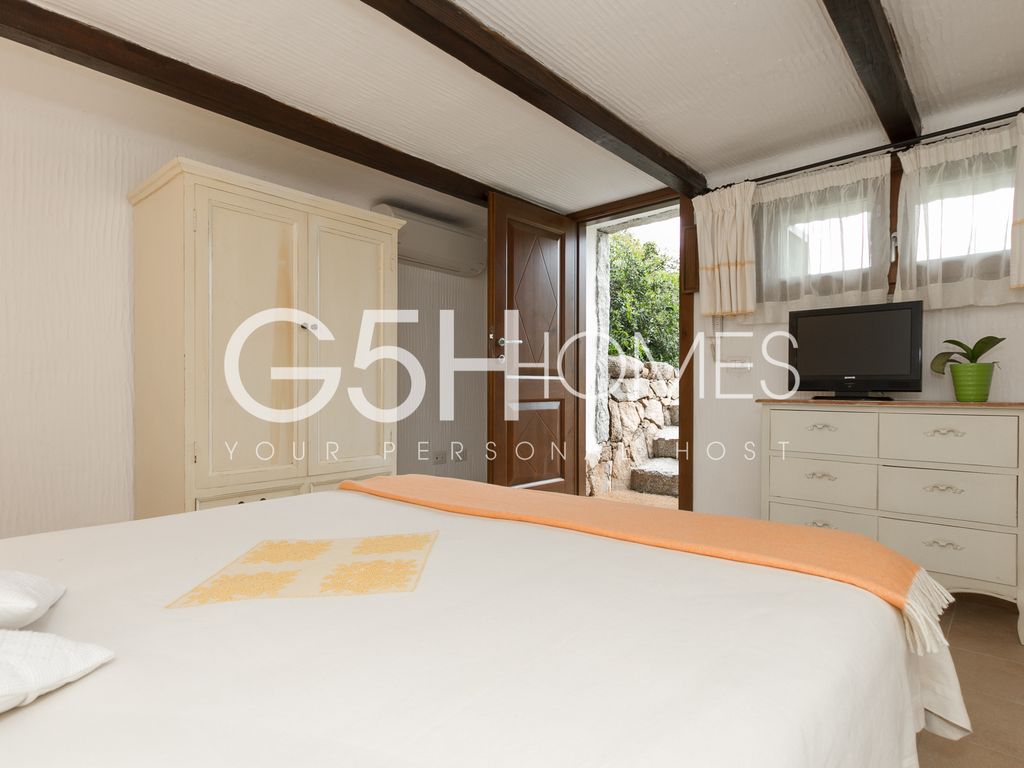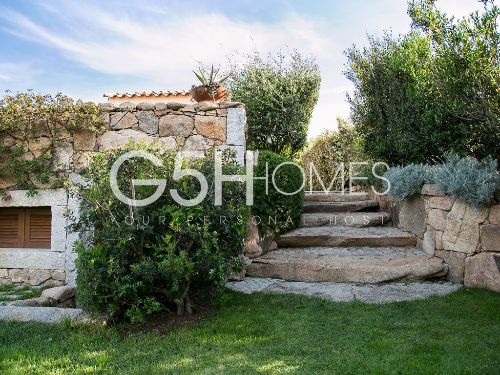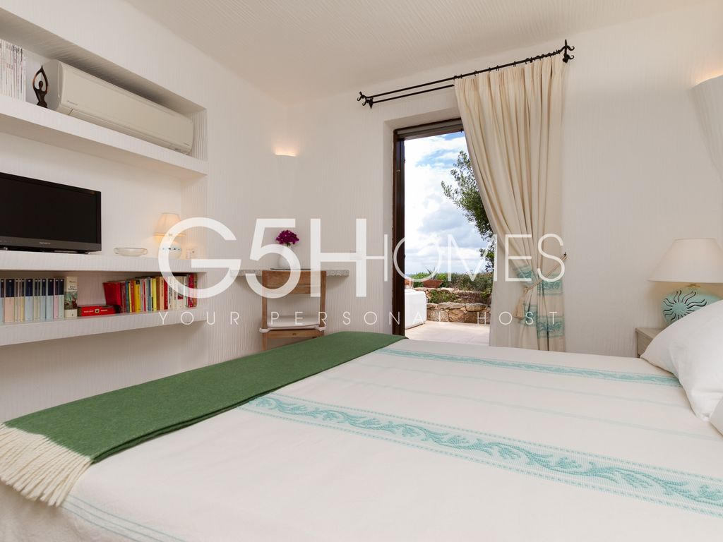 This lovely, tastefully restored villa is situated in an exclusive panoramic location, commanding a breathtaking view of the sea. Cool, secluded, independent and comfortable, it is the every family holiday dream home. The patio is the hub of the house, providing a fluid and homogeneous continuity between indoor and outdoor areas: the glistening and fragrant sea of Sardinia can be enjoyed in the ample open space created by the lounge, patio and terrace. The fully fenced garden surrounding the villa, very safe for children, has a direct and private access to a small sandy beach bordered by rocks. The villa overlooks a small bay with shallow waters, ideal for children and for a relaxing swim. In this setting, the sea becomes a private swimming pool. The villa (whose outside walls are tiled in local stone) is composed of: a living room, a fully equipped kitchen, three double bedrooms with air conditioning and flat-panel TV, one bedroom with 2 single bunk beds, 3 bathrooms with shower, a covered patio that can be closed with a beautiful and practical sliding window, a terrace furnished with comfortable white sofas and sun loungers, a fenced garden, an outdoor hot-water stone shower, an outdoor kitchen with stone barbecue. One of the 3 bedrooms has its own private entrance, ideal for guests or for domestic staff. The house is beautifully fitted with custom-made furniture by local artisans and Sardinian textiles. All rooms have sea views and are equipped with sliding windows and fly screens. Internet is free and Wi-Fi. The beach just below the house and the whole setting makes this the perfect home for one or two families with children who want the best for their vacation. Every day you can go to a different beach, since there are also many other beautiful sandy beaches and small coves within walking distance from the villa. In a radius of 500 meters, there are 2 bars, 2 restaurants, a small supermarket, a newsagent and tobacconist, rental boats and paddleboats, a windsurfing school.