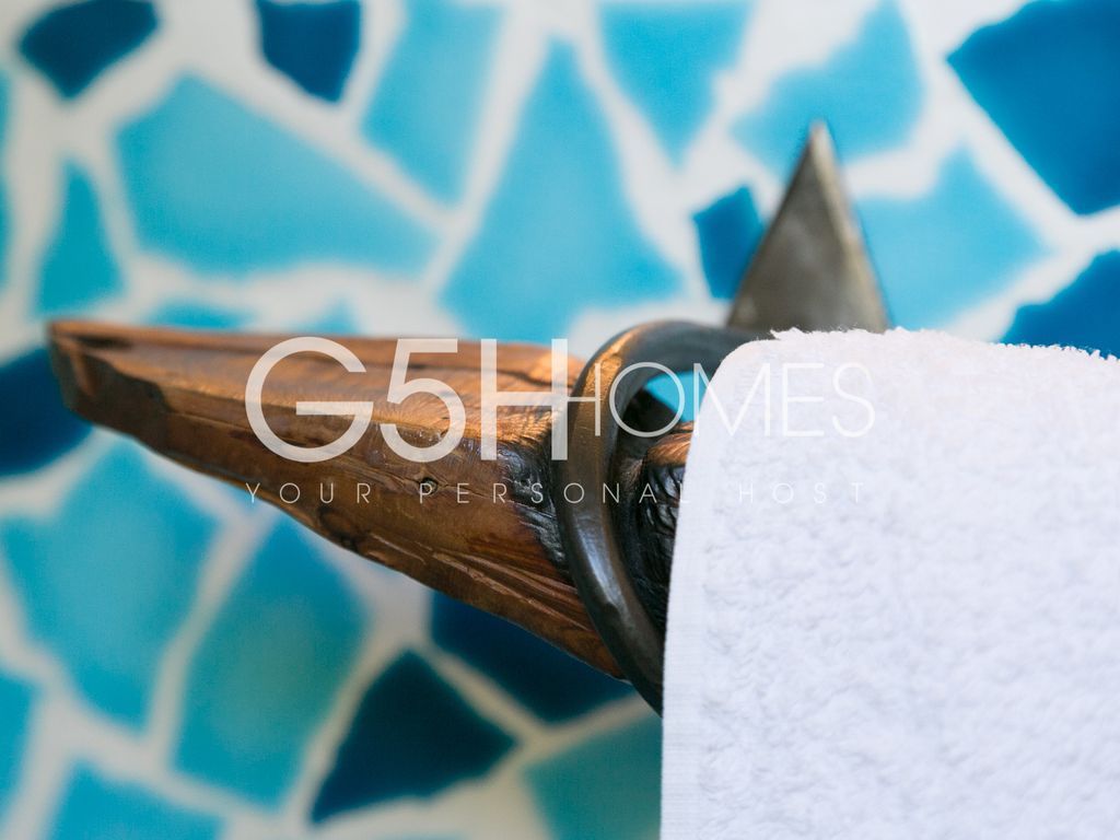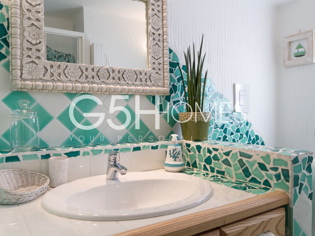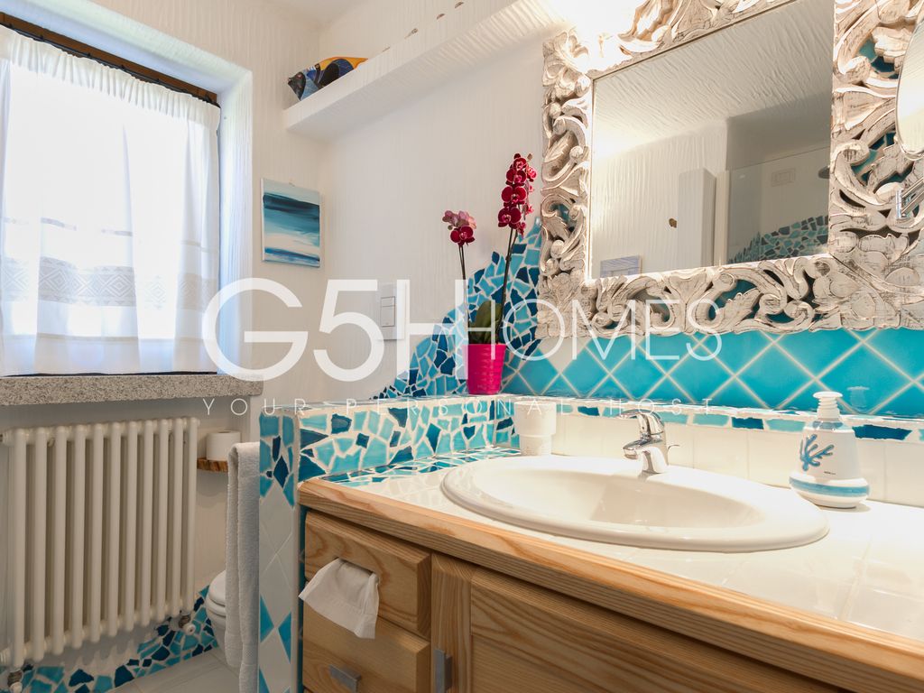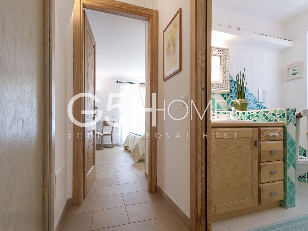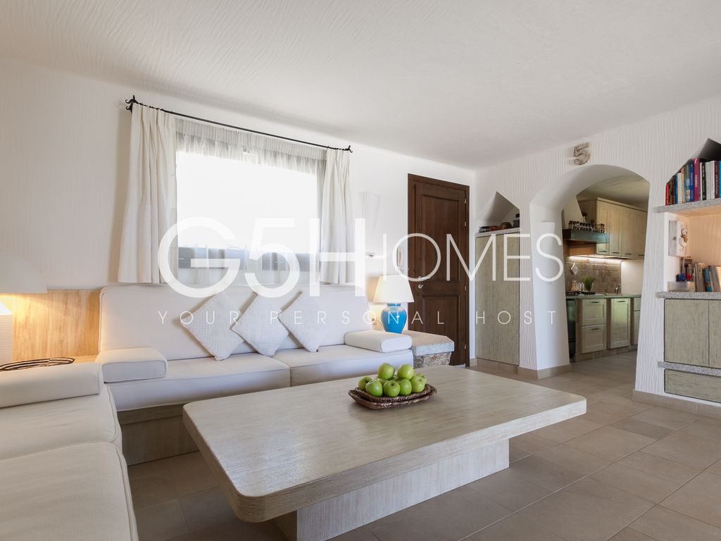This lovely, tastefully restored villa is situated in an exclusive panoramic location, commanding a breathtaking view of the sea. Cool, secluded, independent and comfortable, it is the every family holiday dream home. The patio is the hub of the house, providing a fluid and homogeneous continuity between indoor and outdoor areas: the glistening and fragrant sea of Sardinia can be enjoyed in the ample open space created by the lounge, patio and terrace. The fully fenced garden surrounding the villa, very safe for children, has a direct and private access to a small sandy beach bordered by rocks. The villa overlooks a small bay with shallow waters, ideal for children and for a relaxing swim. In this setting, the sea becomes a private swimming pool. The villa (whose outside walls are tiled in local stone) is composed of: a living room, a fully equipped kitchen, three double bedrooms with air conditioning and flat-panel TV, one bedroom with 2 single bunk beds, 3 bathrooms with shower, a covered patio that can be closed with a beautiful and practical sliding window, a terrace furnished with comfortable white sofas and sun loungers, a fenced garden, an outdoor hot-water stone shower, an outdoor kitchen with stone barbecue. One of the 3 bedrooms has its own private entrance, ideal for guests or for domestic staff. The house is beautifully fitted with custom-made furniture by local artisans and Sardinian textiles. All rooms have sea views and are equipped with sliding windows and fly screens. Internet is free and Wi-Fi. The beach just below the house and the whole setting makes this the perfect home for one or two families with children who want the best for their vacation. Every day you can go to a different beach, since there are also many other beautiful sandy beaches and small coves within walking distance from the villa. In a radius of 500 meters, there are 2 bars, 2 restaurants, a small supermarket, a newsagent and tobacconist, rental boats and paddleboats, a windsurfing school.