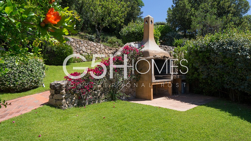 In the basement there is another double bedroom with ensuite bathroom, ideal for guests or for domestic staff. The house is surrounded by a private and well-groomed garden, which is fully enclosed and equipped with sun loungers. Children and adults alike will enjoy the outdoor areas and ample garden. A beautiful stone barbecue is also at the disposal of guests. The condominium swimming pools, one for adults and one for children, are only 100 metres away. The pool area commands an unparalleled view of the entire Costa Smeralda.