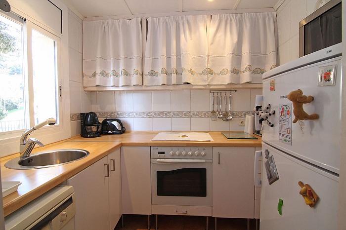 Beautifully designed and fully equipped, it has all you can possibly need. A four-burner electric cooker, traditional oven, refrigerator with small frozen product storage space, dishwasher, electric coffee pot, as well as all the equipment for daily cooking.