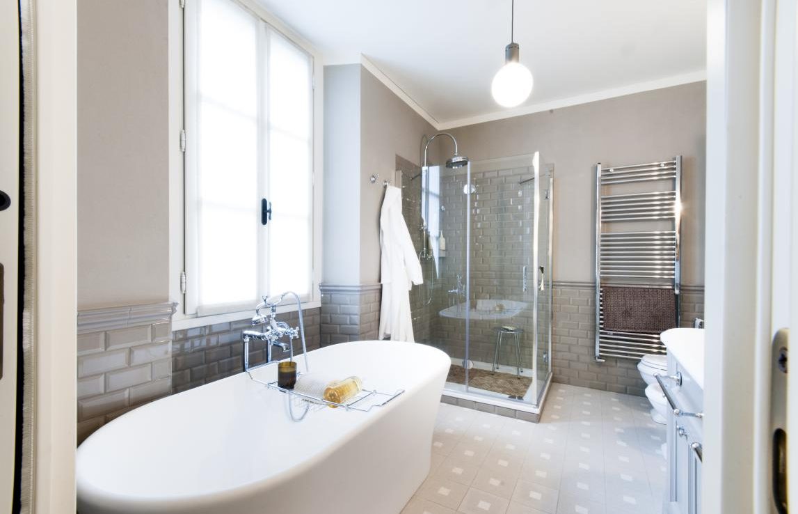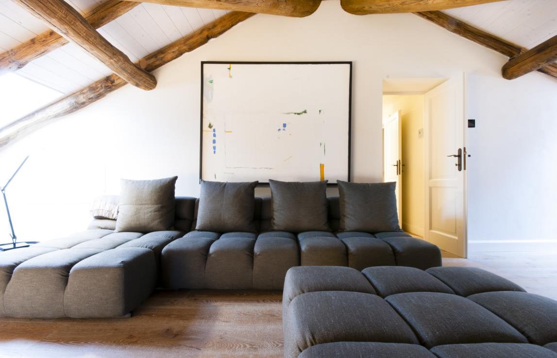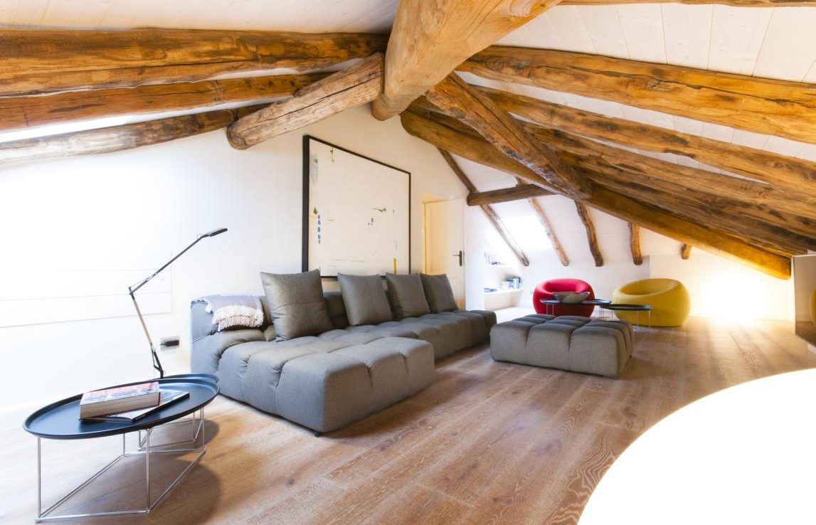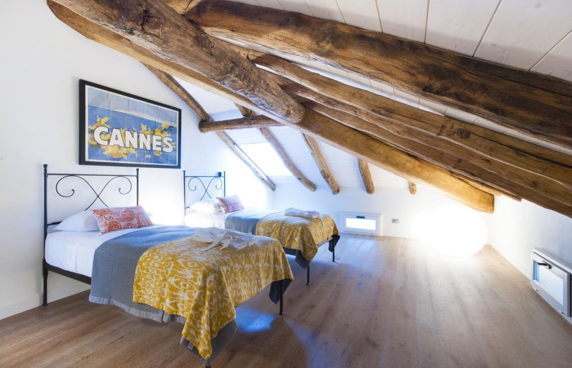 On the attic a family suite that includes one bedroom with double bed, one with twin bed, full bath and a lovely lounge.