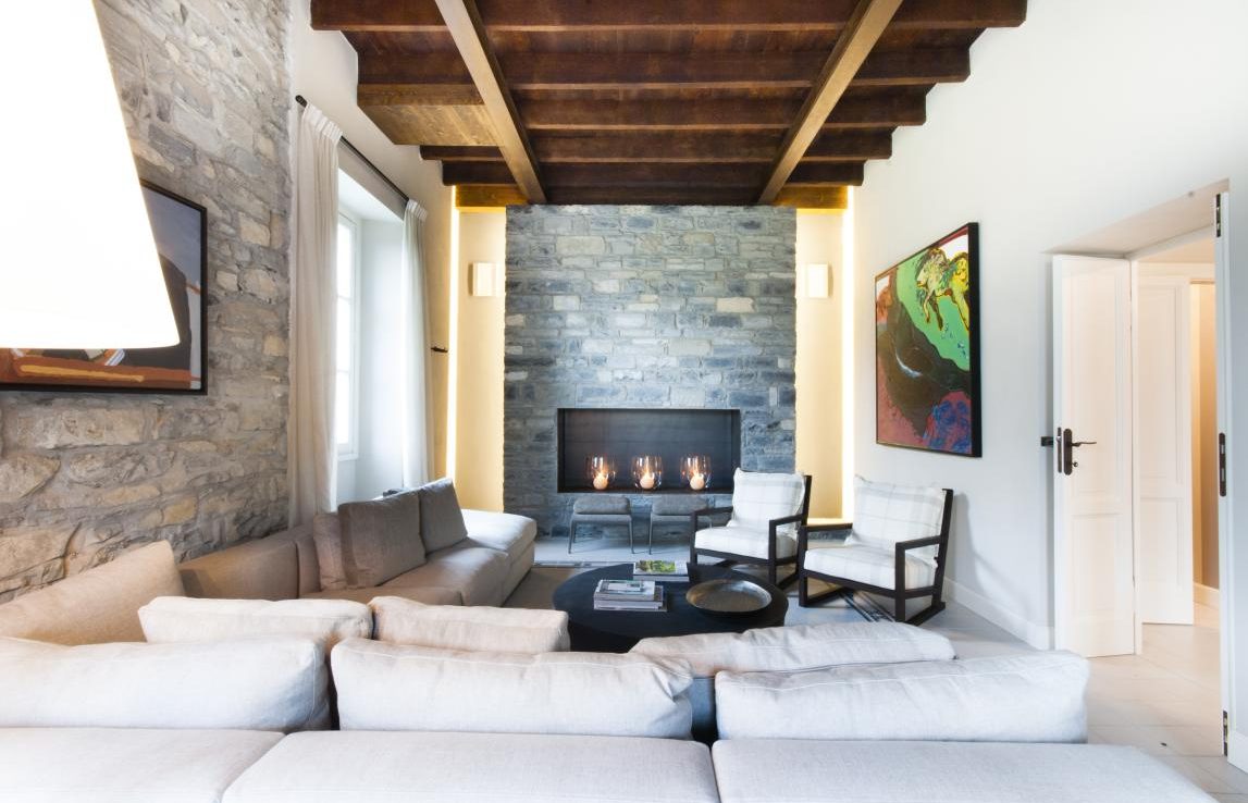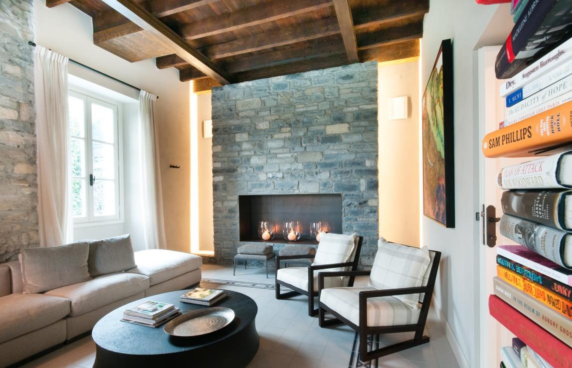 Bright living room with reading corner and fireplace with access to the garden where you can spend unforgettable moments with family and friends.