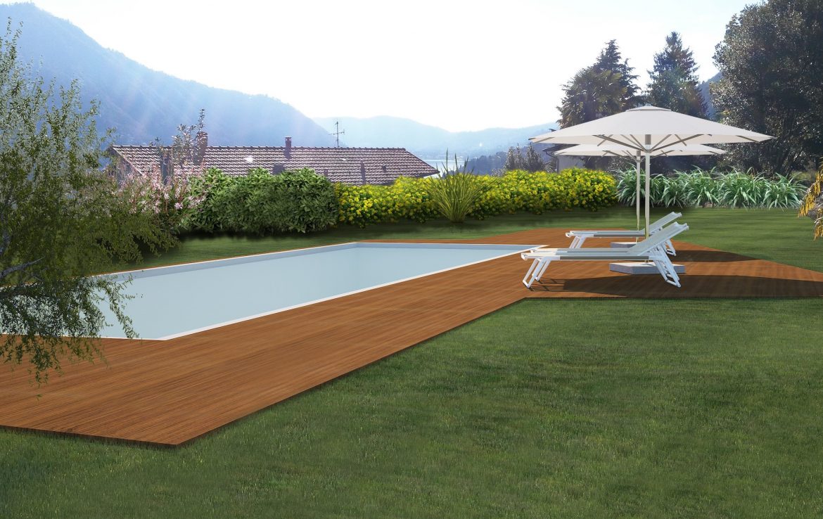 The large swimming pool with deck overlooking the lake is the perfect place for total relaxation during the summer.