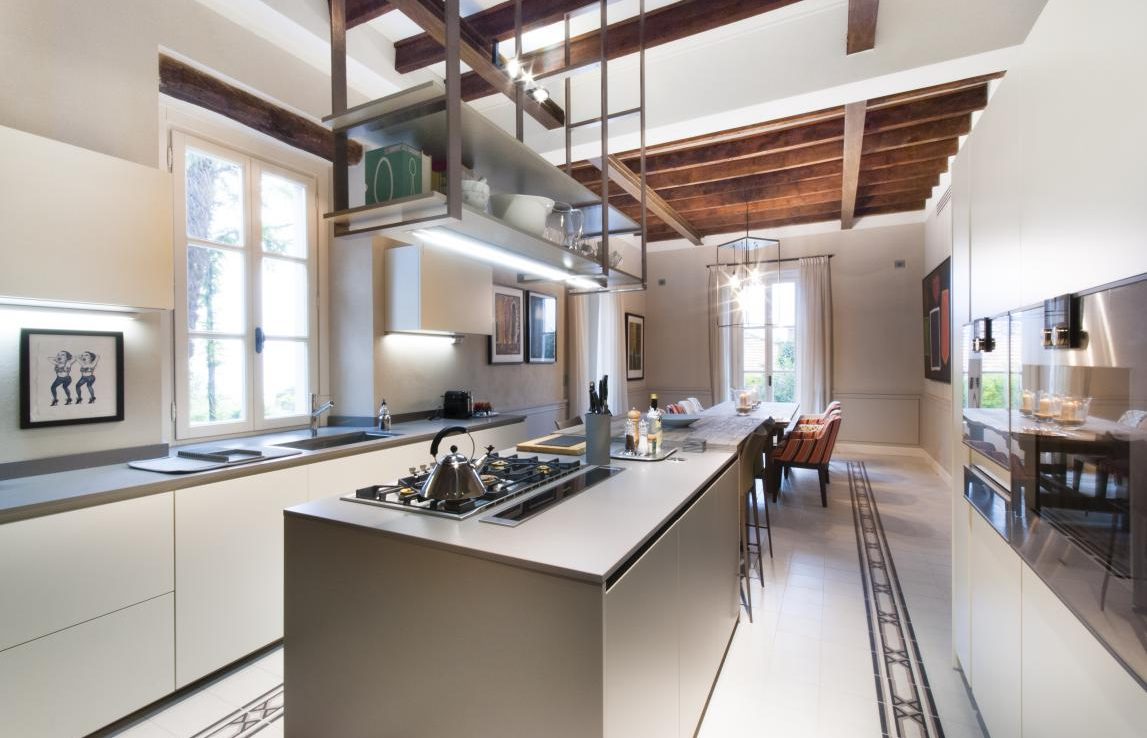 On the ground floor there is the fully equipped cook’s kitchen; Gaggenau appliances including five-burner gas range and two ovens, warming oven, refrigerator/freezer with ice maker, and Miele dishwasher; Nespresso coffee maker;