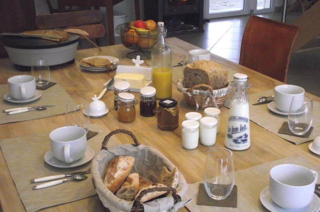 We offer every morning to accompany your hot drink fresh products and as usual "homemade": breads, cakes, yogurts, cottage cheese, fruit juice (depending on the season), jams, salted butter caramel cream.
