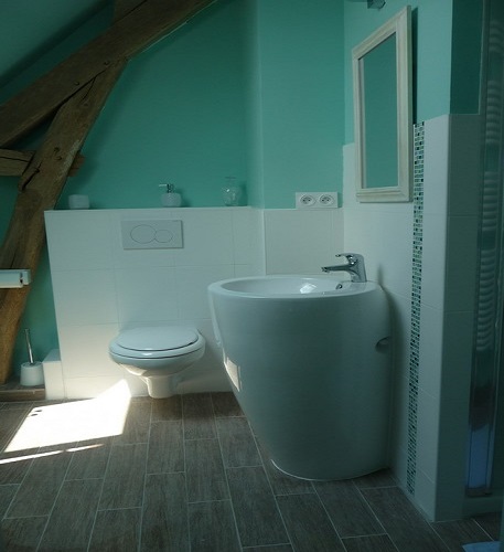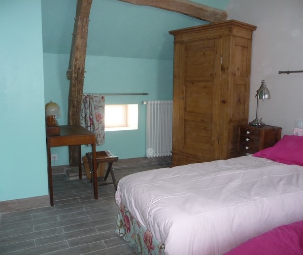 Room Pivoines:- The room Pivoines is located on the floor of the old barn under the apparent frame. It has 2 beds of 90 × 200 which will be able to be separated or regrouped in a big bed of 180 × 200. The room have an attached bathroom.