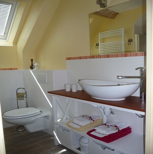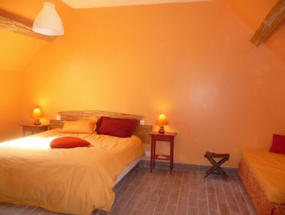 Iris Room:- The Iris room is located on the ground floor of the old barn and fitted out to accommodate people in wheelchairs. It has 2 beds of 90 × 200 which will be able to be separated or regrouped in a big bed of 180 × 200. The bathroom of an area of 10m2 is equipped with a walk-in shower.