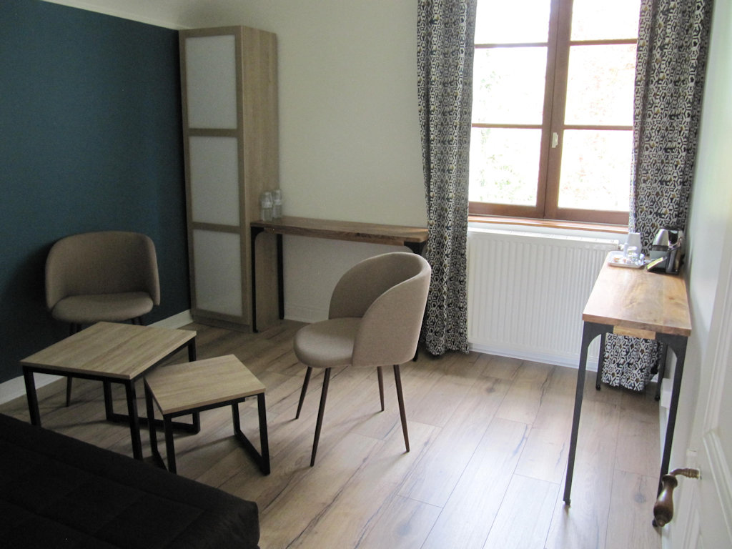 "Garden-side" room accommodating up to four persons (two adults and two children or four adults) consisting of a double room with adjoining private living room which can be converted into a room for two persons Twin beds), all with a private shower and WC.