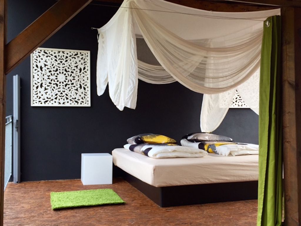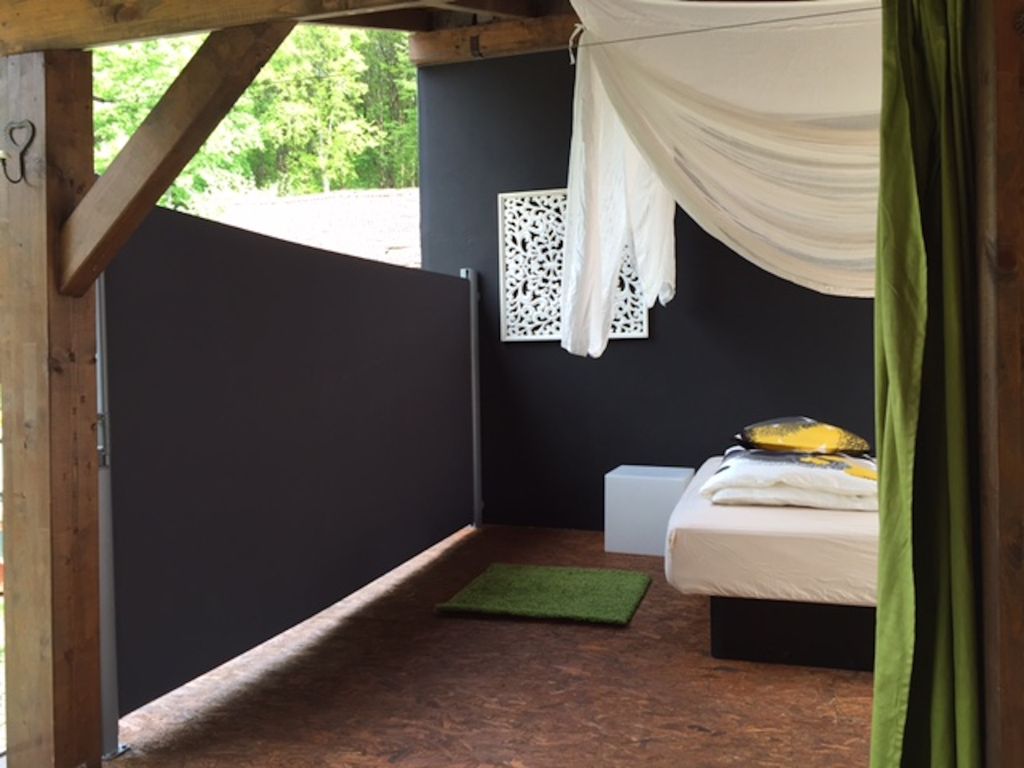 2 suites including one inside and an unusual outside, the attic room with waterbed and Woodbull, transparent tent hanging in the trees.
