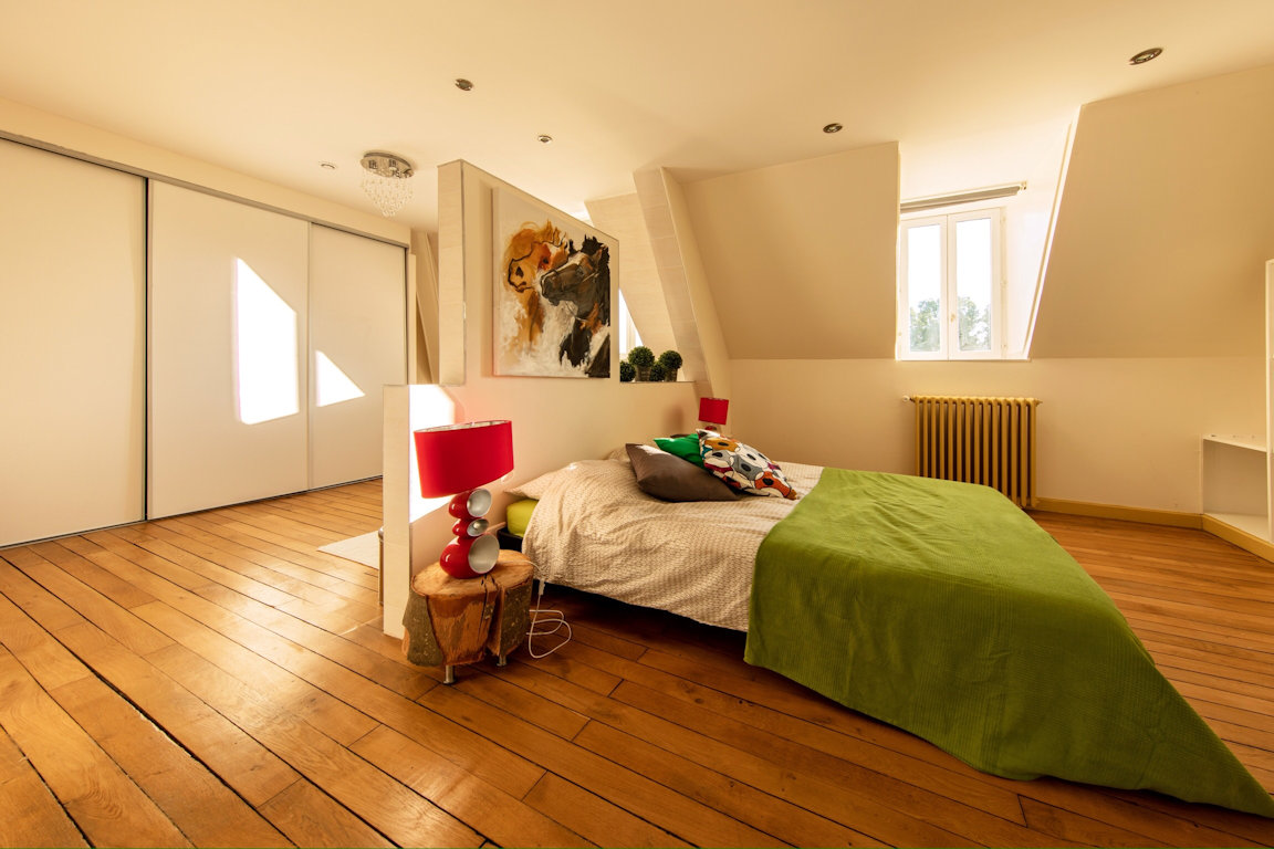 Situated on the first floor, this apartment, located in a part of the castle built in the fifteenth century, offers an area of 150 m2, accommodating up to 6 people. Ideal for family getaways or with friends, but also professional at only fifteen minutes from Vichy, it has two bedrooms with large double bed (160 x 200) and a bedroom with two single beds, as well as a private bathroom with two showers.