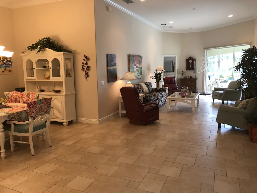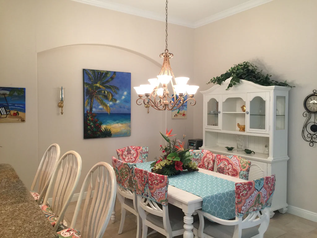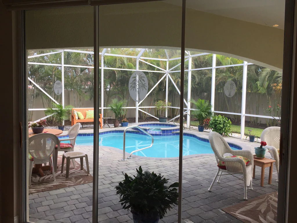This large 3 bedroom, 2 bath Home with private heated spa and pool. We have a 7-28 night minimum, depending on time of year. This home (1 side of a duplex, with it's own private driveway, garage, backyard, pool and spa) has 2050 Sq ft and a 2 car attached garage, High 11.5 ft and 10 ft ceilings Throughout. The Master bedroom has a King Size bed and both guest bedrooms have full size beds making the home sleep a total of 6 people. It is fully furnished, the kitchen has all new appliances, washer, dryer, and everything you should need. Your vacation home includes a 65" HD TV, 32"Tv in master, 24" TV in 1 bedroom, DVR-Cable, Wireless and wired internet, water, electric, heated pool and spa- ALL INCLUDED! Large Master suite with 2 sinks, private toilet, tub, and huge walk-in shower. All linens, washer, dryer, all kitchen appliances, outdoor grill, microwave, mixer, plates glasses, pots, casserole dishes, pans,....basically everything you need except clothes and toiletries. The pool and spa are heated with an electric heat-pump system that may not work well when temperatures are below 50 degrees (rare). Available for monthly rentals from $3800-$6500 a month based on nightly rate. Rates plus $250 cleaning fee, and 12% tax. Up to 2 pets under 20 lbs or 1 under 40 lbs are allowed with a $100 pet fee. It is 1.2 miles to beach. 3 restaurants in walking distance. Orlando is a little over an hour. You can also order a personal Massage from a certified Therapist for in-home massages for an extra expense if available.