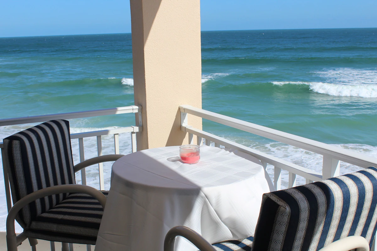 This deluxe third floor, direct oceanfront corner unit is the closest unit to the ocean in the entire building! The large balcony has a 270-degree view of the beaches to the North and South, the ocean and the pool.