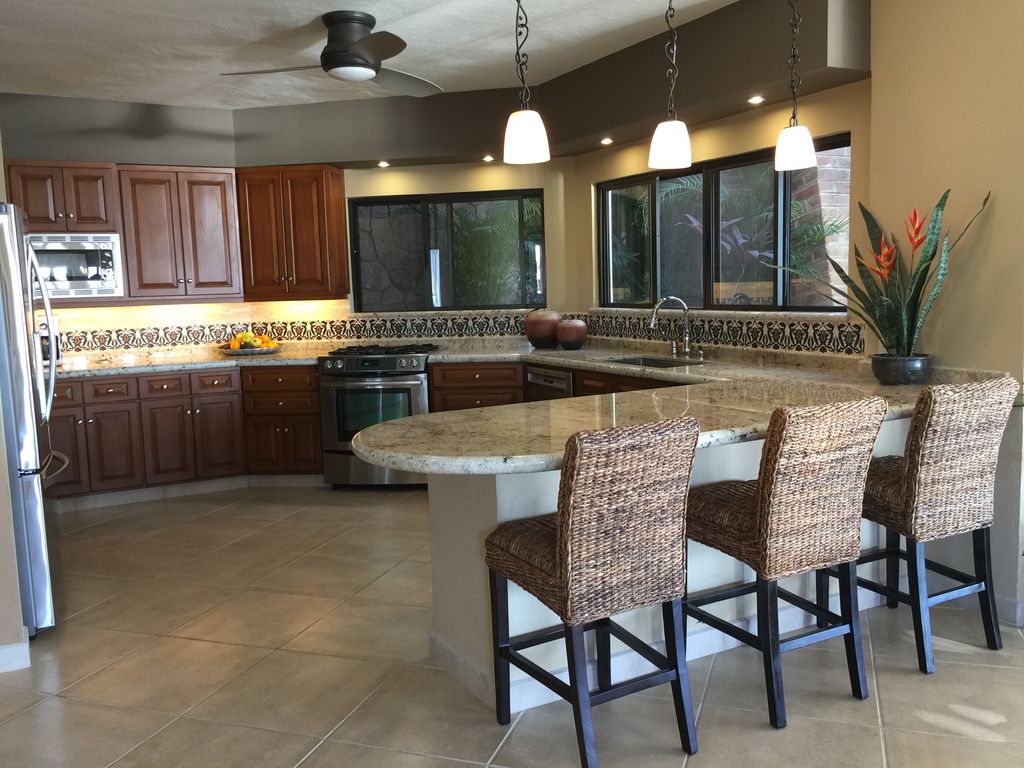 No need to stay inside though, when those same views can be seen while frolicking in the villa’s newly remodeled pool, or cooling down under the shade structure. There are plenty of lounge chairs for having a savory bite from the gas barbecue. However you add it up, this Pedregal villa is the satisfying sum of all its worthy parts.