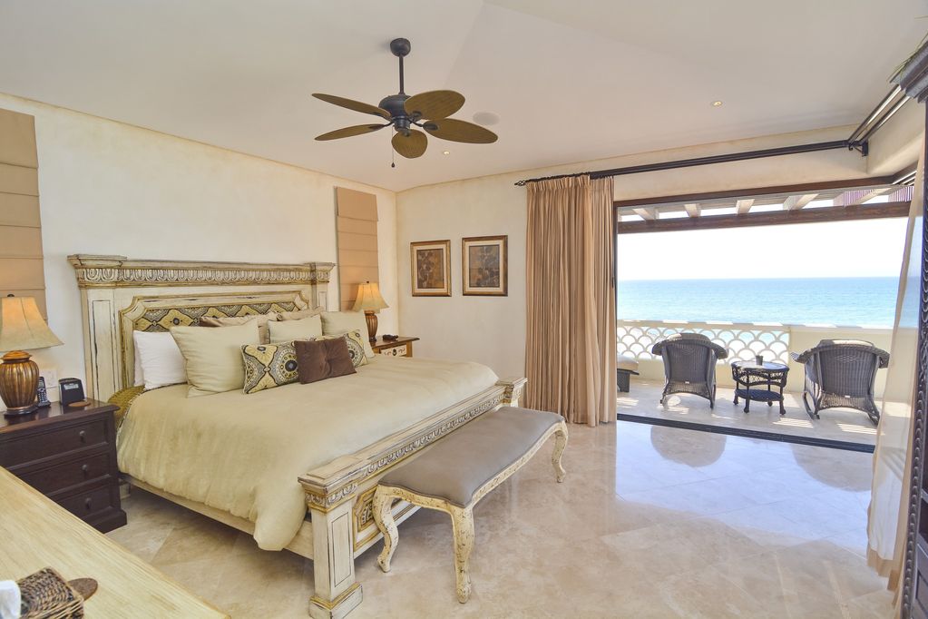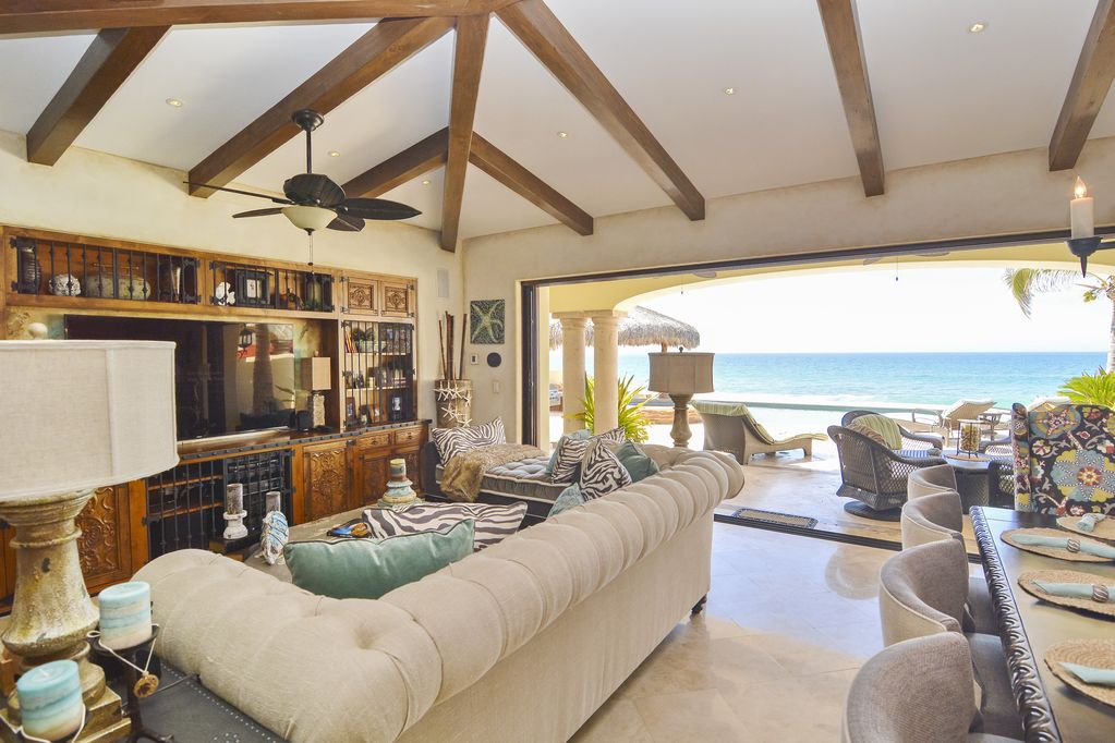 This elegantly decorated home has 2 master bedrooms, each with a king-size bed, large open terrace, and expansive views of the Sea of Cortez to Palmilla Point.