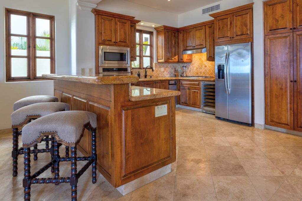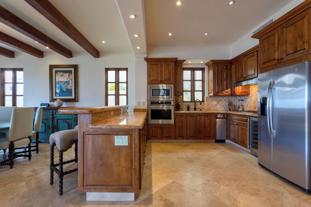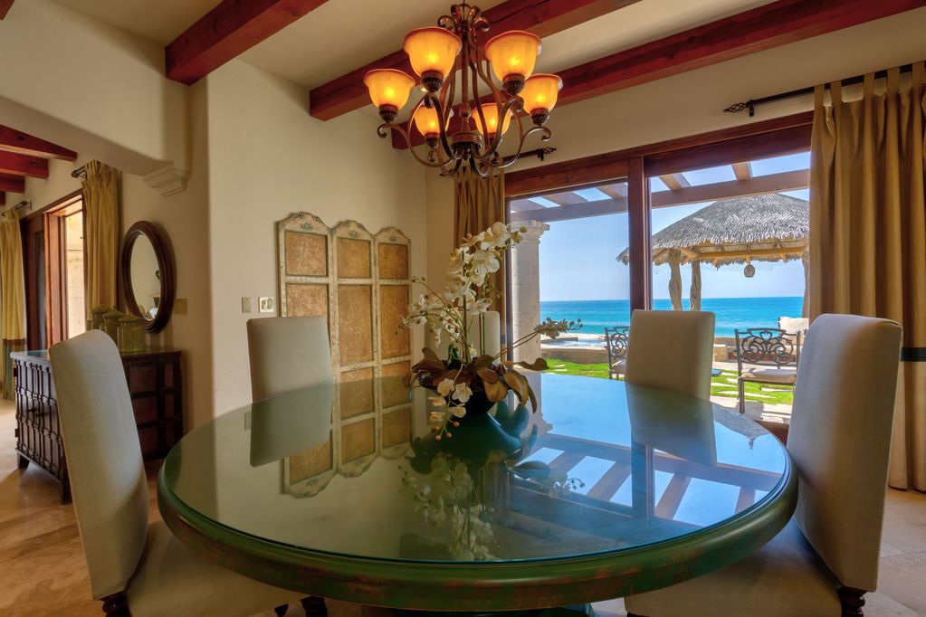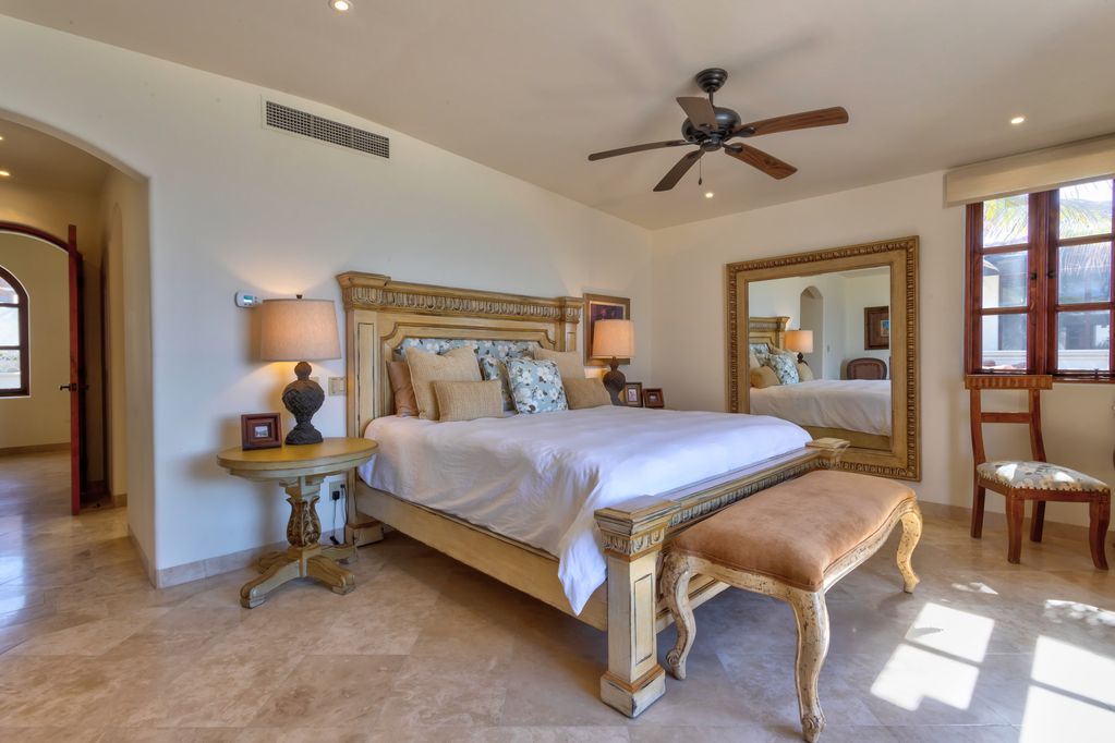 The home has 2 master bedrooms, each with a king size bed, large open terrace, and expansive views to the Sea of Cortez and Palmilla Point. There is one guest room located downstairs with a queen size bed. On the second level there is a “casita” bedroom and bathroom with private exterior entry way, private terrace, and king-size bed. There is a spacious kitchen, laundry room, separate dining area, and parking space.