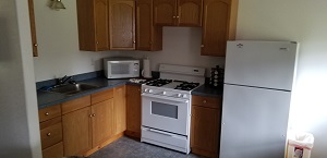 equipped kitchen, dining area, and a half bath. Upstairs are two nice sized