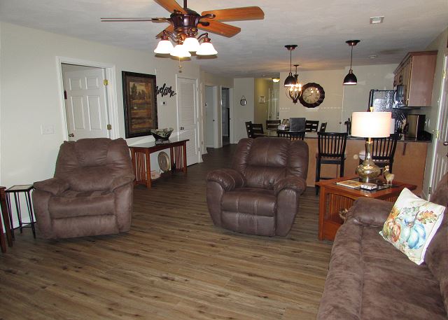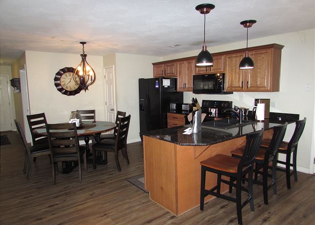 The guests of this 3 BR, 2 Bath condo located at Vickery Resort enjoy 1400 sq. ft. of living space, granite counters, washer, dryer, a full kitchen stocked with all the appliances and utensils needed to prepare a gourmet meal, large bedrooms, a master bedroom that looks out onto Table Rock Lake, Jacuzzi tub and a walk-in shower in the master bath.