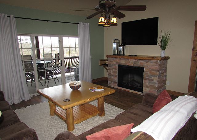 This condo has dock access, so bring your boat and enjoy our 11 x 30' slips, swim or fish off the swim deck. Branson and all its attractions are only a few minutes away and Table Rock Lake just a few steps from the door. You may never want to leave the comfort of this well appointed Lodge Style 3 BR Condo. The LODGE Unit boasts custom handcrafted log furniture, a warm fireplace for cozy nights and a picture perfect view of the lake from the living room, master bedroom and spacious deck.