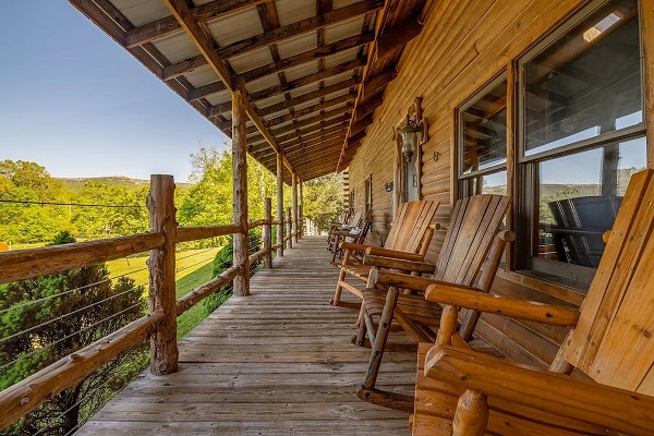 The lodge has over 2,500 sq. ft. of decks and porches so no matter what time of day it is you can find some shade or sun to relax in a rocker or chair. The covered front porch is great if it's raining to listen to the rain on the metal roof or to watch the sun set over Lookout Mountain. The back screened in porch is awesome to enjoy birdwatching or listening to the sounds of nature. The enclosed porch has the foosball table and sauna and outdoor game equipment and the 3 balcony decks are great for a morning cup of coffee to start your day. The large side deck has incredible views year round as you can see to the end of the cove.