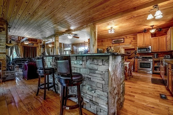 The 2 kitchens provide lots of options for the cooks and chefs as well. The larger kitchen has a gas oven, convection oven, and convection microwave oven as well as 2 full sinks,dishwasher,XL fridge, and lots of countertops for preparation. The smaller kitchen has an electric stove, XL fridge, dishwasher, full sink, washer/dryer, and more countertop areas. There are 2 full-size dining room tables and seating at the bar in the larger kitchen/dining area as well.