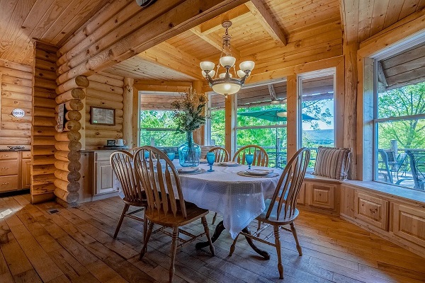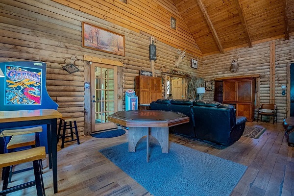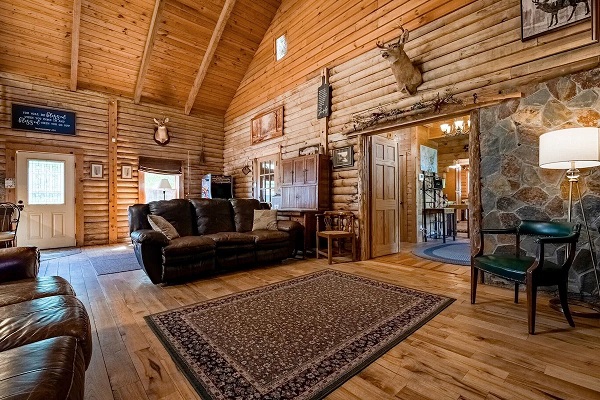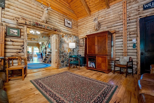 The Lodge of McLemore's Cove is a custom built 6,000 square foot log home that has many unique features that will make your stay memorable. The 28 ft. cathedral ceilings and the massive 10 foot front doors are a glimpse into what is in store for our guests. Gorgeous mountain views in all directions and unheard of privacy make this a place that seems to have been untouched by time. The Lodge sits atop a ridge with Lookout Mountain 2 miles to the west and Pigeon Mountain 2 miles to the east and the end of the McLemore's Cove 5 miles to the south. The early risers can watch the sun peek over Pigeon Mountain and everyone can watch the beautiful sunsets over Lookout Mountain. And the best is yet to come as once the sun sets the spectacular night sky puts on a show that is breathtaking. If you love nature's beauty then you will be at home here and if you enjoy real log homes this is the place for you. If you want the big city and parking lots then you may have a change of heart after your visit. Whatever your preferences we will welcome you to a beautiful log home that is in a gorgeous setting.