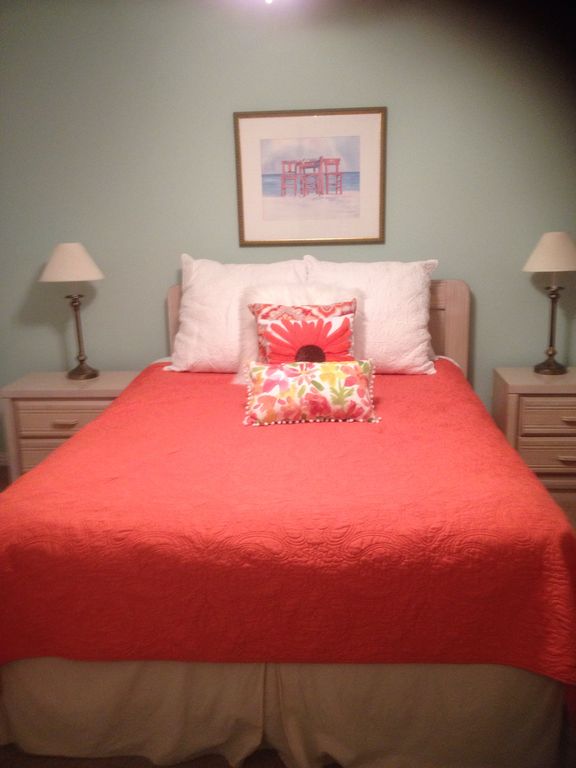 Onsite property features include a freshwater lake with pier and gazebo, a boardwalk to dedicated beach access, two outdoor Jacuzzis, and barbecue grills within picnic areas. This amazing 2-bedroom 2 bath vacation rental in Perdido Key is fully furnished and equipped, including king bed in the master suite, queen bed in the guest bedroom, large sofa, built-in bunks for the kids, stackable washers/dryers and large private patio just steps away from the beautiful pool. There is also a green area for kids to play.