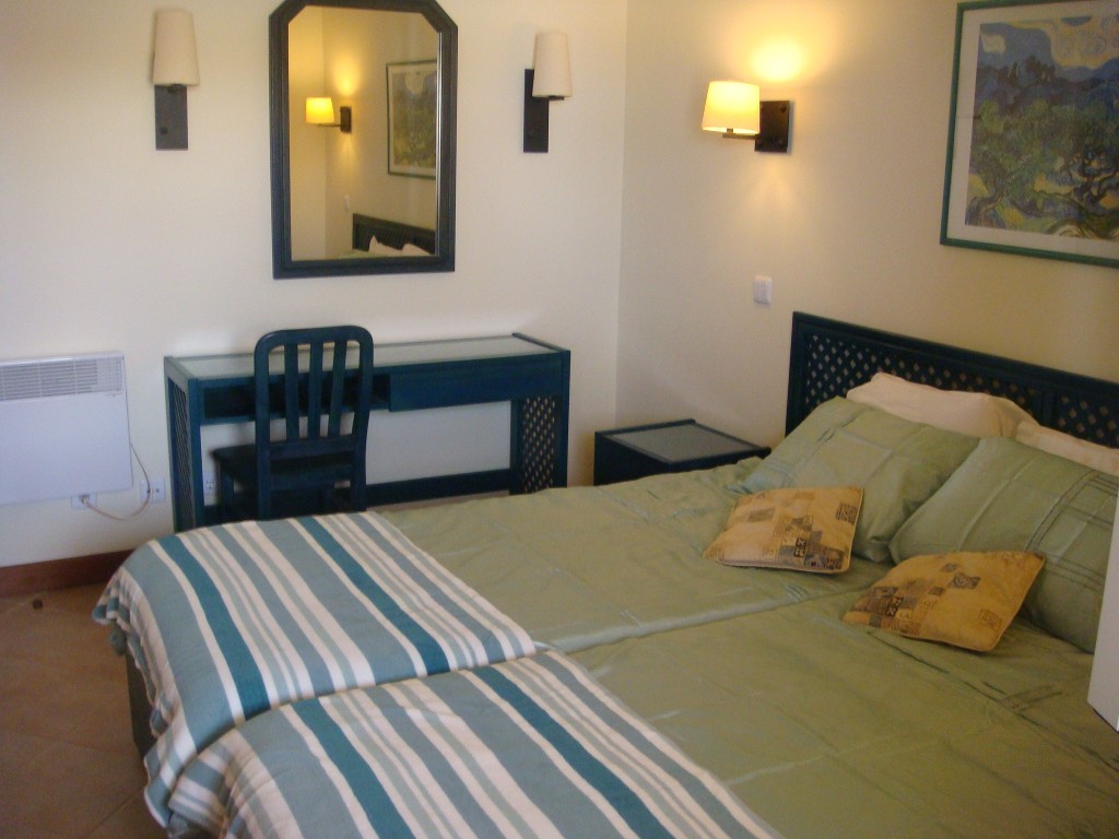 This 1 bedroom courtyard apartment is located in the family friendly Quinta dos Brejos in Albuferira. The courtyard consists of 8 apartments (4 on each side), The Apartment is ideally positioned between the Old Town Albufeira and the Montechoro Strip been within a 15min walk to each, also within 20min walk to the lovely beaches. Some of the best golf courses in Europe, are only 10min drive away. This one bed sleeps 4, consisting of 1 double bedroom and twin sofa beds. The lounge has satellite flat screen TV. It has a large tiled & heated bathroom with power shower, bidet, bath & WC. There is a fully fitted kitchen with fridge/freezer, washer/dryer, oven, hob, toaster, kettle, etc.There is car parking at the rear of the apartment , and the pool is only 30sec walk away and can be seen from the dining room and kitchen windows Only 200yds from restaurants, bars,supermarket & shops. The new Algarve Golf Academy with restaurant / bar is only a few minutes walk away, along with a new park, Close to the Old Town, New Strip, sandy beaches, water parks, Zoomarine, Algarve Shopping Centre, bus station and Local market. Out and about: The numerous beaches are ideal for sun bathing during the day or for pleasant evening walks. The condominium has two swimming pools, an adult pool and a paddling pool for small children. The communal area includes terraced and grassed areas with plenty of space for children to play safely. This apartment is in a courtyard setting which is used as the patio area. It has one bedroom with twin beds and two further bed settees in the living area (linen provided) allowing the apartment to accommodate four. It has one bathroom (towels provided)and a fully kitchen equipped with fridge, freezer, cooker, hob, microwave and utensils.There is a separate dining area with seating for 5 people. Water Adventure: Zoo Marine Swim with Dolphins at Zoo Marine. The dolphin interaction programme lets you get to know and interact with trained bottle nose dolphins, under the supervision of specialised professionals, at the same time as taking part in sequences of aquatic behaviour. Other attractions include the seals and sea lions, call birds show, birds of prey and lots more. Water Adventure: Slide & Splash one exciting adventure. Share this crazy and dizzy adventure unique in Portugal. Enjoy it in safety with your family and friends. Golf: The new Golf Academy is 200yds walk from apt, complete with restaurant/bar/driving range, etc. Tuition available from two times winner of the European Tour Daniel Silva who was voted Portugal's top player, who is the Academy Professional. Golf Courses such as Penina, Quinta do Lago and Vilamoura have been established for more than 20 years, but the more recent additions of San Lorenzo, voted No. 2 in Europe, Vila Sol, two times venue for the Portuguese Open and Pinta have done much to establish the Algarve`s reputation for attracting the discerning golfer. Off the course there is a wealth of restaurants, serving some fine fish food and delightful local wines, Moorish ruins and castles to explore, and if you are looking for total relaxation then why not find one of the secluded beaches that dot the length of the coastline